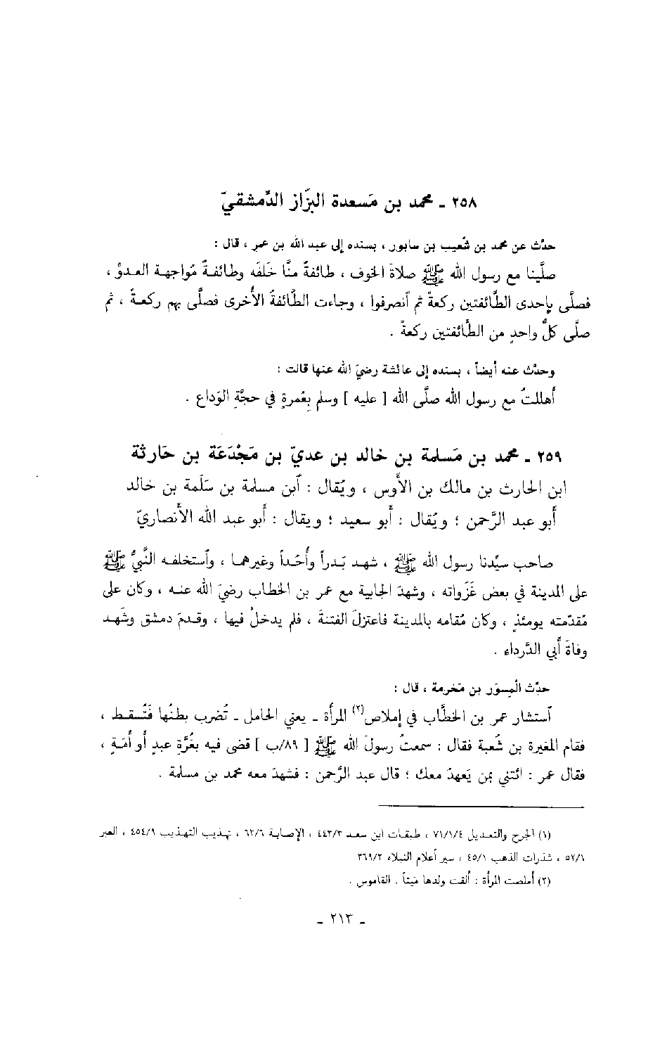 حدث عن محمد بن شعيب بن سابور، بسنده إلى عبد الله بن عمر، قال: صلينا مع رسول الله صَلَّى اللهُ عَلَيْهِ وَسَلَّمَ صلاة الخوف، طائفةٌ منا خلفه وطائفةٌ مواجهة العدو، فصلى بإحدى الطائفتين ركعةً ثم انصرفوا، وجاءت الطائفة الأخرى فصلى بهم ركعةً، ثم صلى كل واحدٍ من الطائفتين ركعةً.