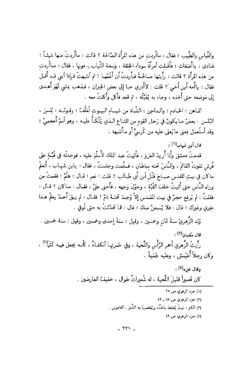 قال سفيان: رأيت الزهري أحمر الرأس واللحية، وفي حمرتها انكفاءٌ، كأنه يجعل فيه كتماً، وكان رجلاً أعيمش، وعليه جميمةٌ.
