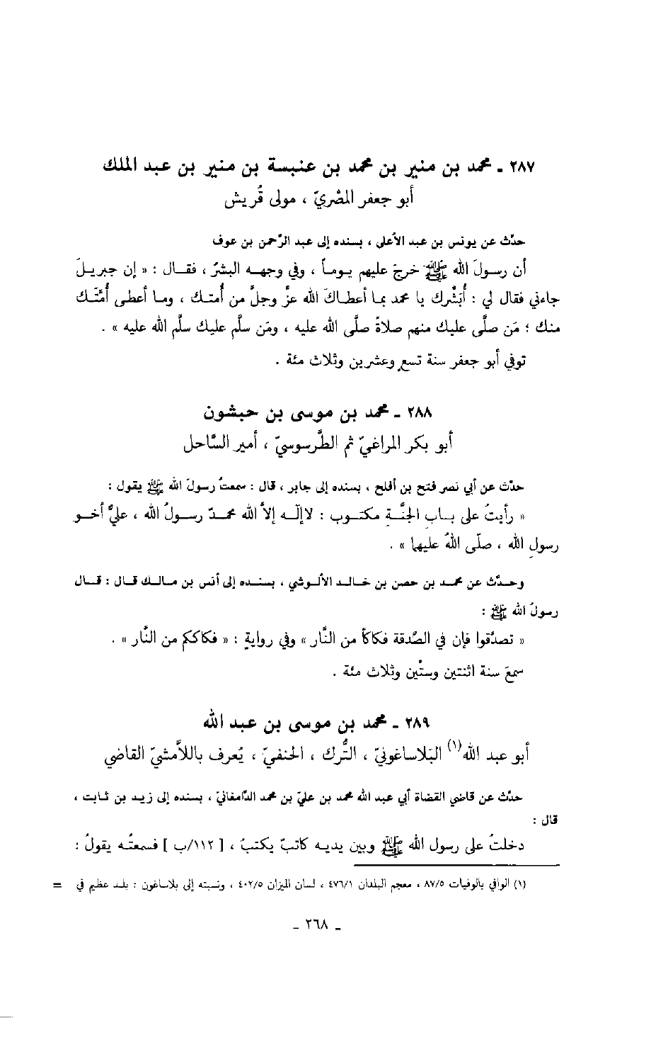 أبو بكر المراغي ثم الطرسوسي، أمير الساحل حدث عن أبي نصر فتح بن أفلح، بسنده إلى جابر، قال: سمعت رسول الله صَلَّى اللهُ عَلَيْهِ وَسَلَّمَ يقول: " رأيت على باب الجنة مكتوب: لا إله إلا الله محمدٌ رسول الله، علي أخو رسول الله صلى الله عليهما ".