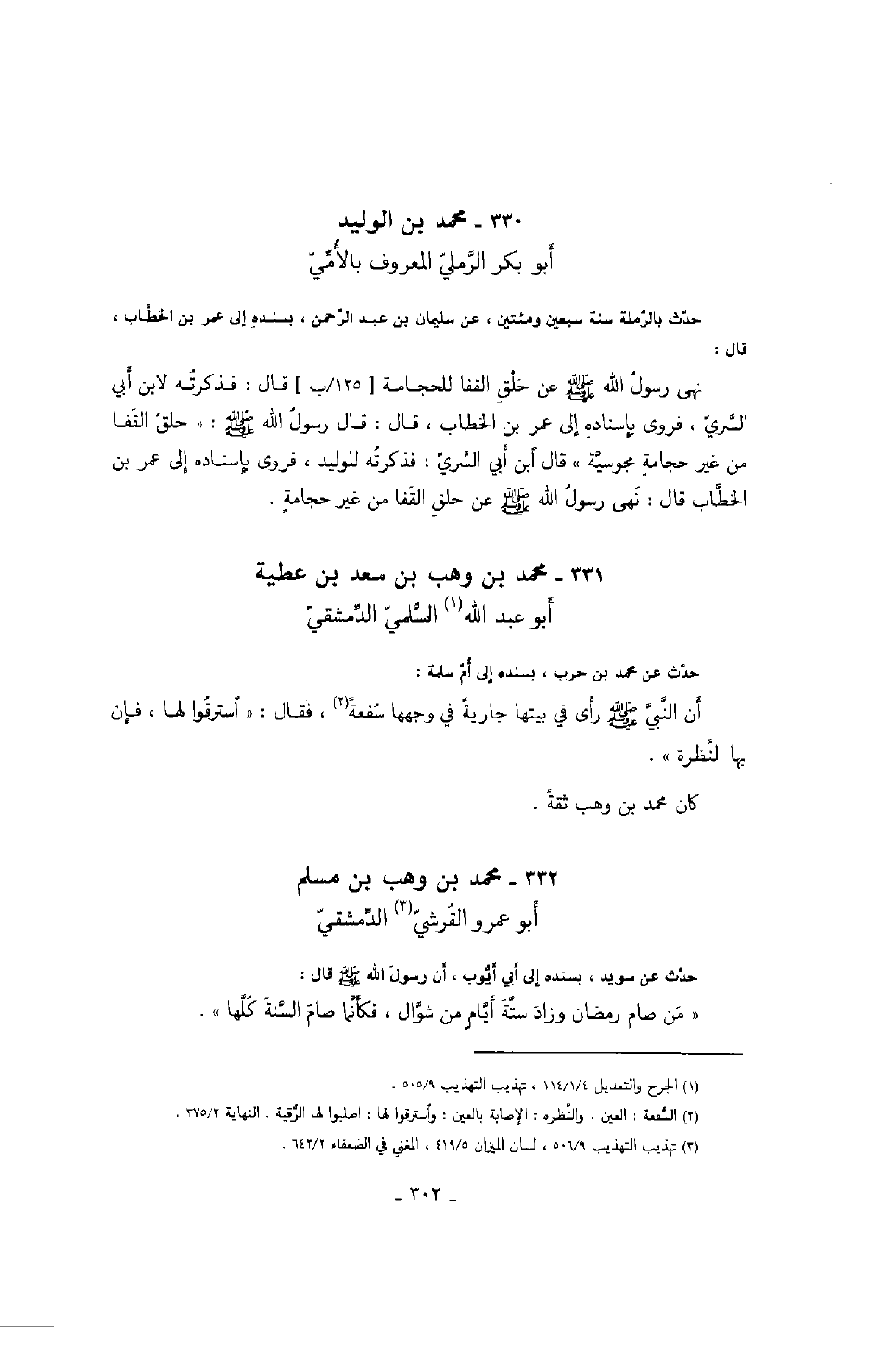 المعروف بالأمي حدث بالرملة سنة سبعين ومئتين، عن سليمان بن عبد الرحمن، بسنده إلى عمر بن الخطاب، قال: نهى رسول الله صَلَّى اللهُ عَلَيْهِ وَسَلَّمَ عن حلق القفا للحجامة قال: فذكرته لابن أبي السري، فروى بإسناده إلى عمر بن الخطاب، قال: قال رسول الله صَلَّى اللهُ عَلَيْهِ وَسَلَّمَ: " حلق القفا من غير حجامةٍ مجوسية " قال ابن أبي السري: فذكرته للوليد، فروى بإسناده إلى عمر بن الخطاب قال: نهى رسول الله صَلَّى اللهُ عَلَيْهِ وَسَلَّمَ عن حلق القفا من غير حجامةٍ.