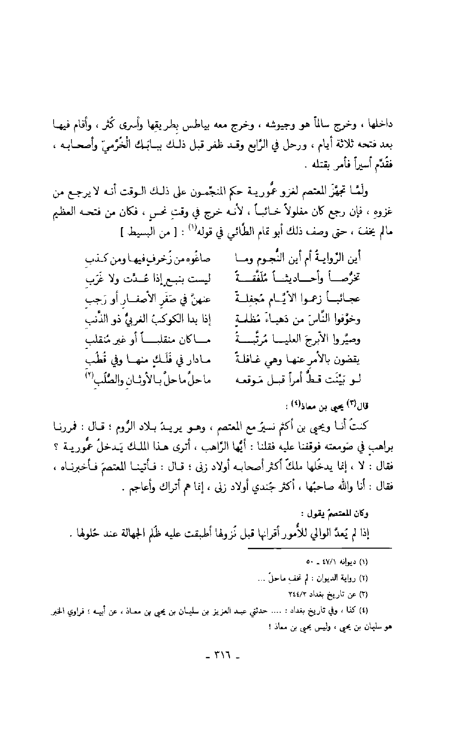 ولما تجهز المعتصم لغزو عمورية حكم المنجمون على ذلك الوقت أنه لا يرجع من غزوه، فإن رجع كان مفلولاً خائباً، لأنه خرج في وقت نحسٍ، فكان من فتحه العظيم ما لم يخف، حتى وصف ذلك أبو تمام الطائي في قوله: من البسيط