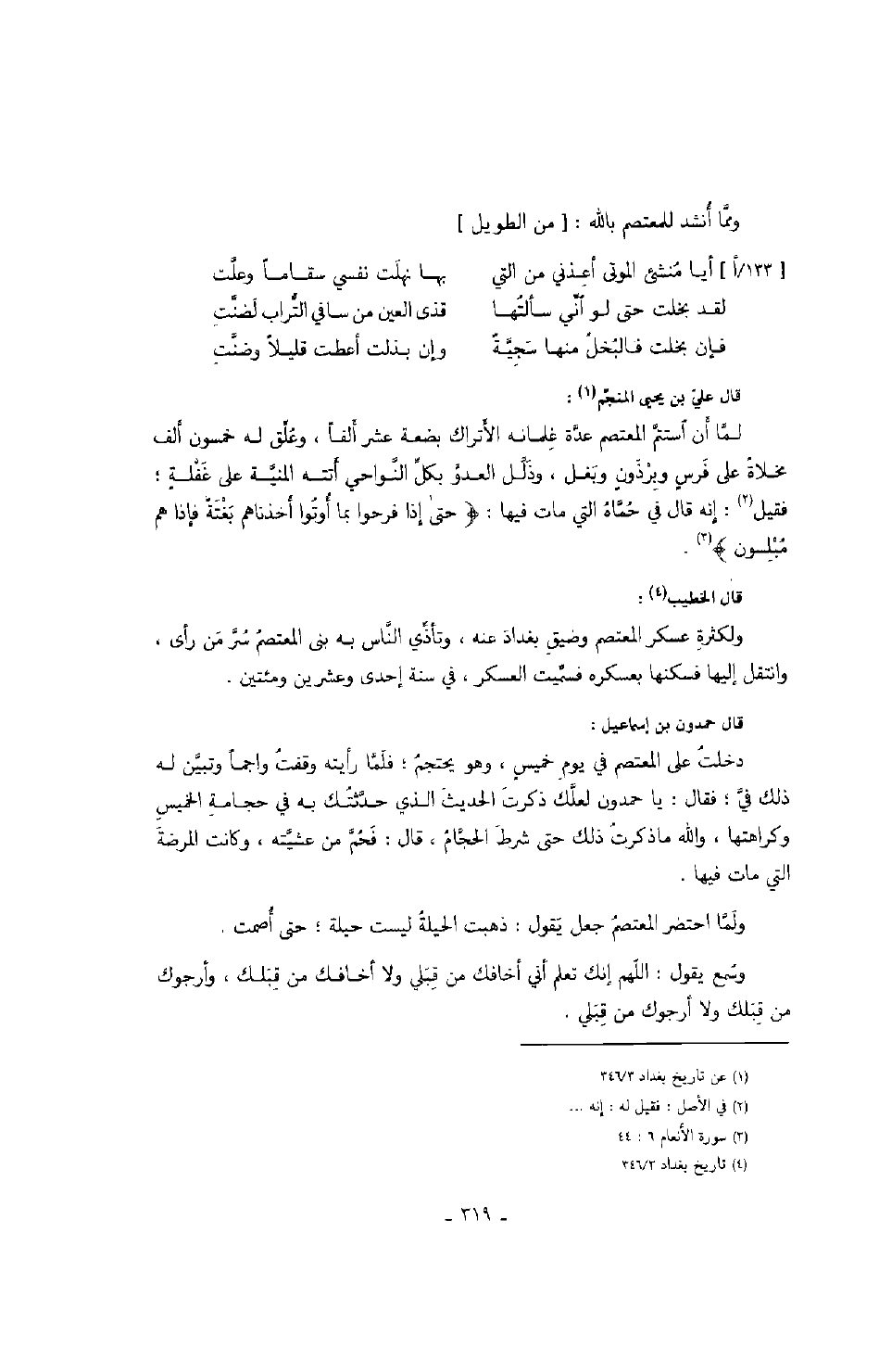 ومما أنشد للمعتصم بالله: من الطويل
