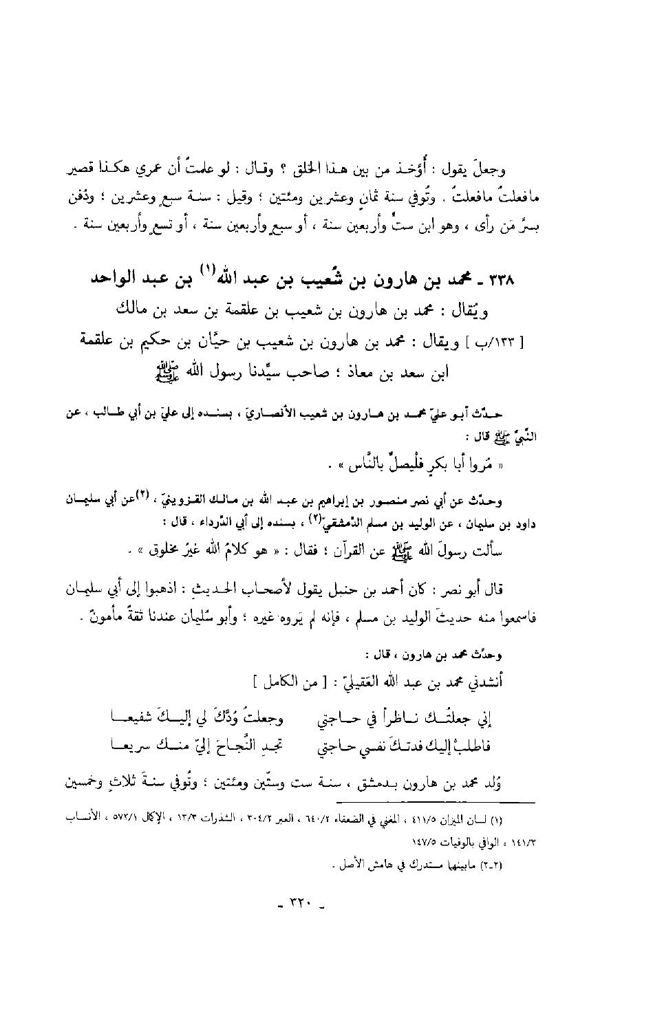 ابن عبد الله بن عبد الواحد ويقال: محمد بن هارون بن شعيب بن علقمة بن سعد بن مالك ويقال: محمد بن هارون بن شعيب بن حيان بن حكيم بن علقمة ابن سعد بن معاذ؛ صاحب سيدنا رسول الله صَلَّى اللهُ عَلَيْهِ وَسَلَّمَ حدث أبو علي محمد بن هارون بن شعيب الأنصاري، بسنده إلى علي بن أبي طالب، عن النبي صَلَّى اللهُ عَلَيْهِ وَسَلَّمَ قال: " مروا أبا بكرٍ فليصل بالناس ".