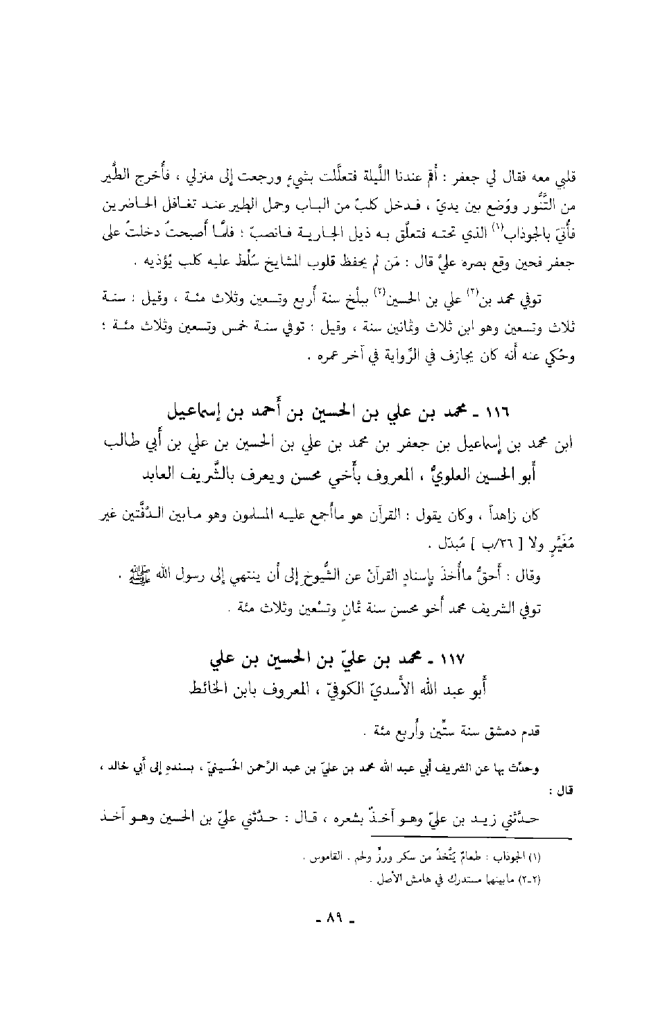 وحدث بها عن الشريف أبي عبد الله محمد بن علي بن عبد الرحمن الحسيني، بسنده إلى أبي خالد، قال: حدثني زيد بن علي وهو آخذٌ