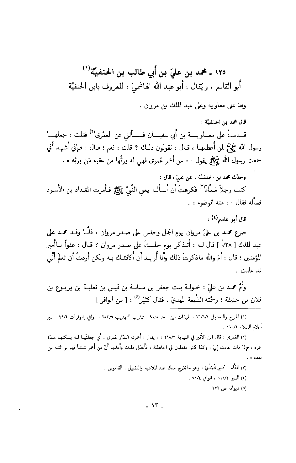ابن الحنفية أبو القاسم، ويقال: أبو عبد الله الهاشمي، المعروف بابن الحنفية وفد على معاوية وعلي عبد الملك بن مروان.