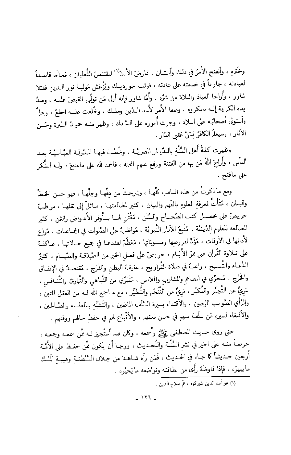 حتى روى حديث المصطفى صَلَّى اللهُ عَلَيْهِ وَسَلَّمَ وأسمعه، وكان قد استجيز له ممن سمعه وجمعه، حرصاً منه على الخير في نشر السنة والتحديث، ورجا أن يكون ممن حفظ على الأمة أربعين حديثاً كما جاء في الحديث، فمن رآه شاهد من جلال السلطنة وهيبة الملك ما يبهره، فإذا فاوضه رأى من لطافته وتواضعه ما يحيره.