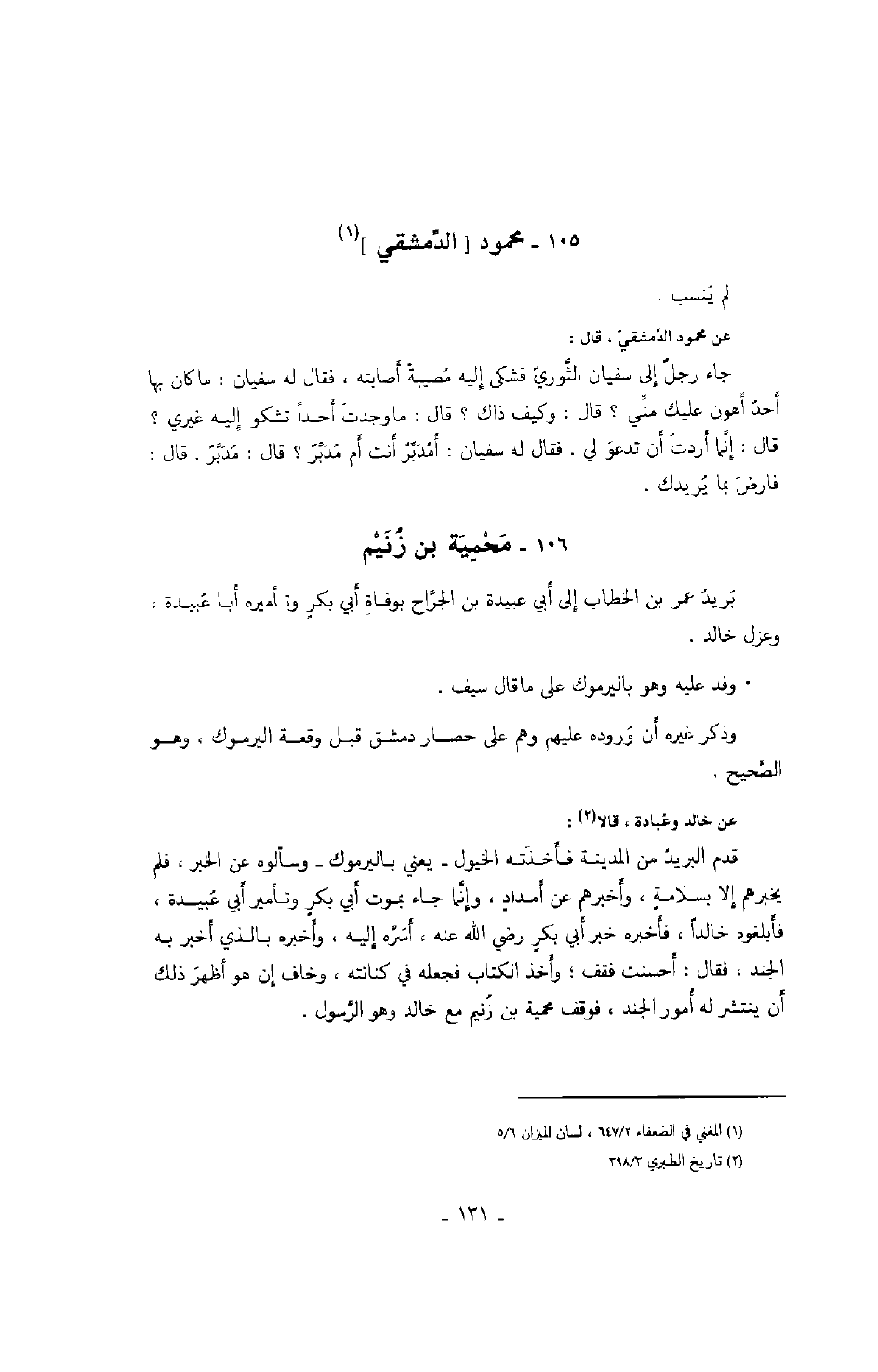 عن خالد وعبادة، قالا: قدم البريد من المدينة فأخذته الخيول - يعني باليرموك - وسألوه عن الخبر، فلم يخبرهم إلا بسلامة، وأخبرهم عن أمداد، وإنما جاء بموت أبي بكر وتأمير أبي عبيدة، فابلغوه خالداً، فأخبره خبر أبي بكر رضي الله عنه، أسره إليه، وأخبره بالذي أخبر به الجند، فقال: أحسنت فقف؛ وأخذ الكتاب فجعله في كنانته، وخاف إن هو أظهر ذلك أن ينتشر له أمور الجند، فوقف محمية بن زنيم مع خالد وهو الرسول.