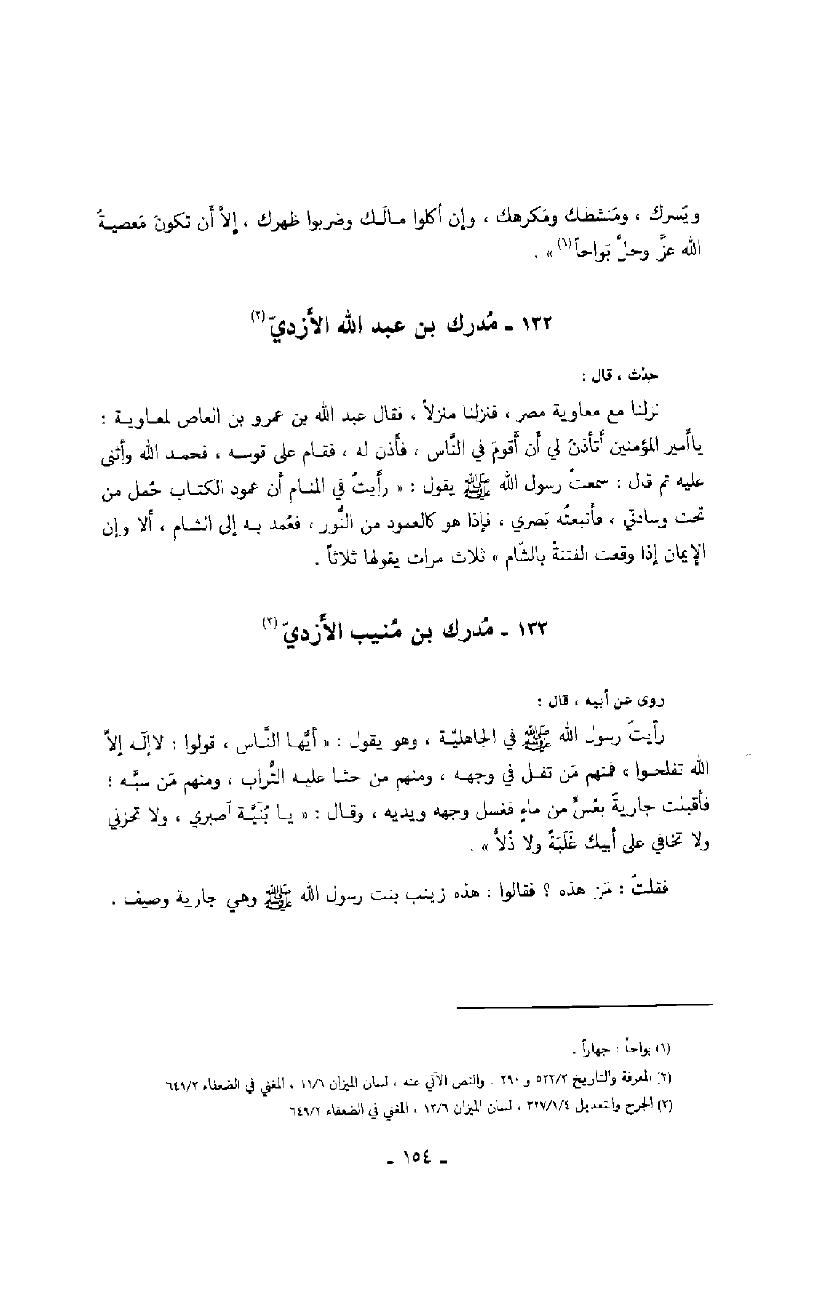 حدث، قال: نزلنا مع معاوية مصر، فنزلنا منزلاً، فقال عبد الله بن عمرو بن العاص لمعاوية: يا أمير المؤمنين أتأذن لي أن أقوم في الناس، فأذن له، فقام على قوسه، فحمد الله وأثنى عليه ثم قال: سمعت رسول الله صَلَّى اللهُ عَلَيْهِ وَسَلَّمَ يقول: " رأيت في المنام أن عمود الكتاب حمل من تحت وسادتي، فأتبعته بصري، فإذا هو كالعمود من النور، فعمد به إلى الشام، إلا وإن الإيمان إذا وقعت الفتنة بالشام " ثلاث مرات يقولها ثلاثاً.