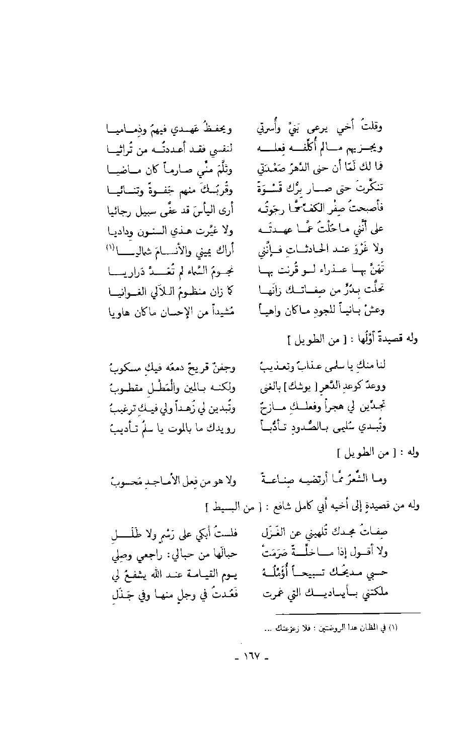 وله من قصيدة إلى أخيه أبي كامل شافع: " من البسيط "