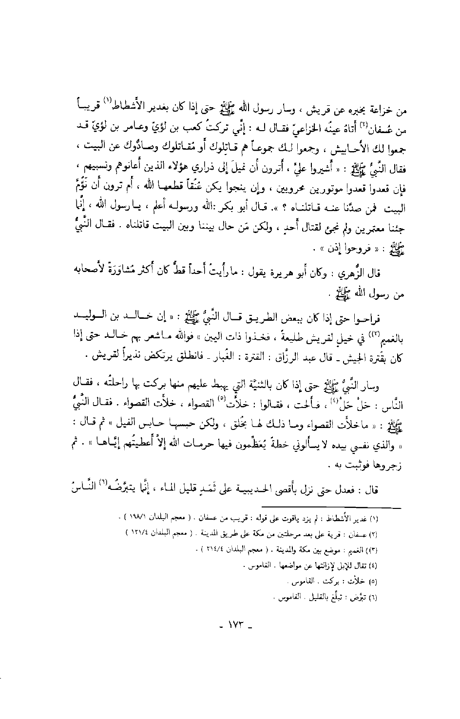 قال: فعدل حتى نزل بأقصى الحديبية على ثمد قليل الماء، إنما يتبرضه الناس