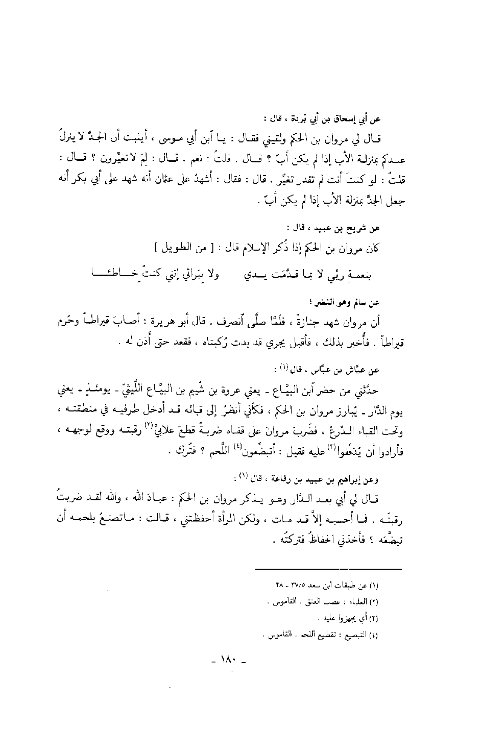 عن شريح بن عبيد، قال: كان مروان بن الحكم إذا ذكر الاسلام قال: " من الطويل "