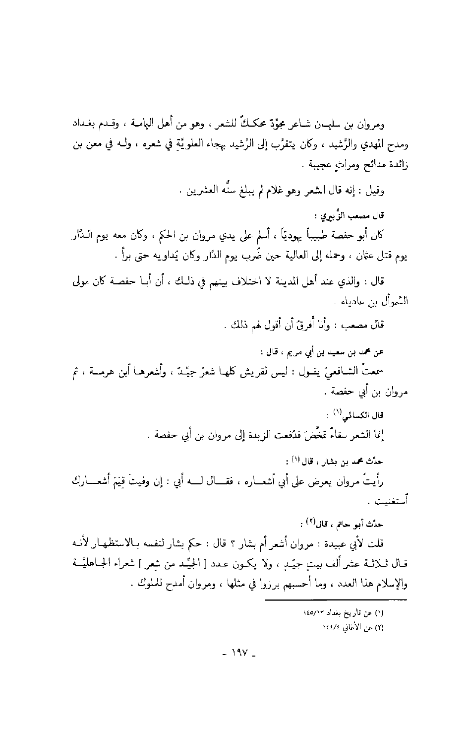 حدث محمد بن بشار، قال: رأيت مروان يعرض على أبي أشعاره، فقال له أبي: إن وفيت قيم قيم أشعارك استغنيت.