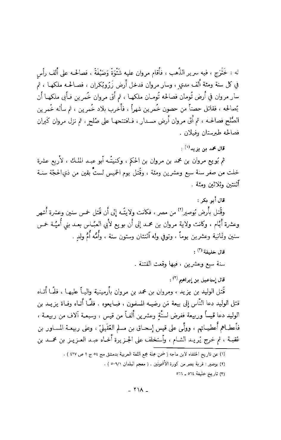 قال محمد بنيزيد: ثم بويع مروان بن محمد بن مروان بن الحكم، وكنيته أبو عبد الملك، لأربع عشرة خلت من صفر سنة سبع وعشرين ومئة، وقتل يوم الخميس لست بقين من ذي الحجة سنة اثنتين وثلاثين ومئة.