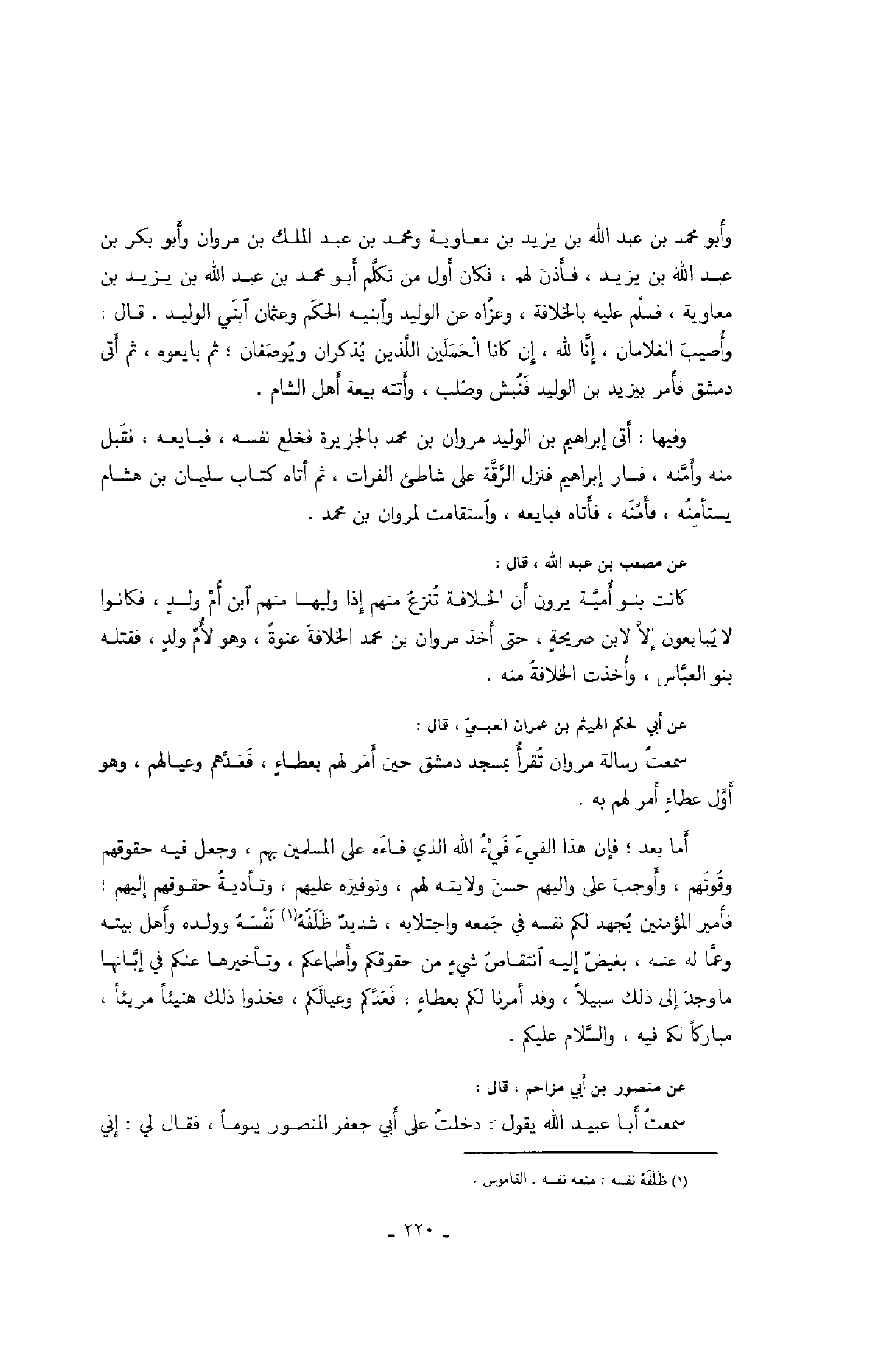عن أبي الحكم الهيثم بن عمران العبسي، قال: سمعت رسالة مروان تقرأ بمسجد دمشق حين أمر لهم بعطاء، فعدهم وعيالهم، وهو أول عطاء أمر لهم به.