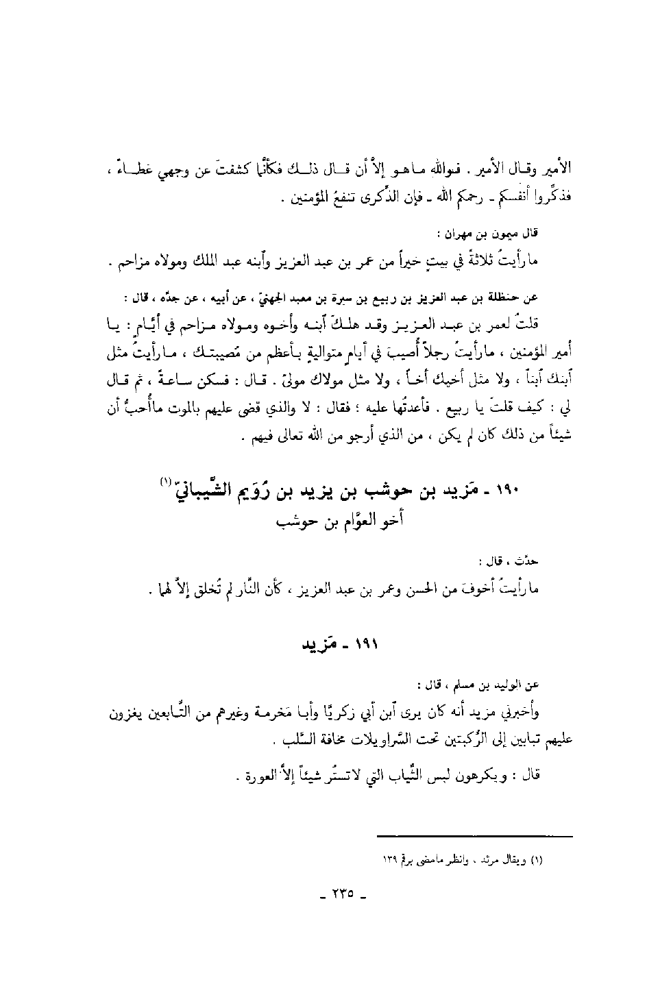 الشيباني أخو العوام بن حوشب حدث، قال: ما رأيت أخوف من الحسن وعمر بن عبد العزيز، كأن النار لم تقلق إلا لهما.