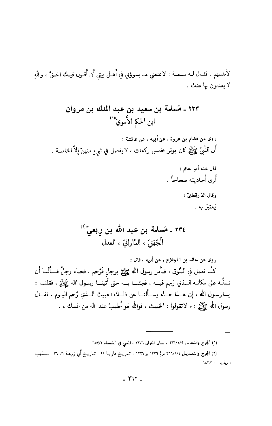 الجهني، الداراني، العدل روى عن خالد بن اللجلاج، عن أبيه، قال: كنا نعمل في السوق، فأمر رسول الله صَلَّى اللهُ عَلَيْهِ وَسَلَّمَ برجل فرجم، فجاء رجل فسألنا أن ندله على مكانه الذي رجم فيه، فجئنا به حتى أتينا رسول الله صَلَّى اللهُ عَلَيْهِ وَسَلَّمَ، فقلنا: يا رسول الله، إن هذا جاء يسألنا عن ذلك الخبيث الذي رجم اليوم. فقال رسول الله: " لا تقولوا: الخبيث، فوالله لهو أطيب عند الله من المسك ".