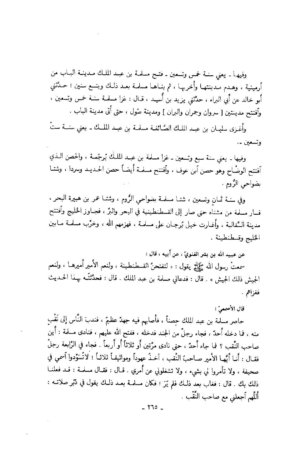 عن عبيد الله بن بشر الغنوي، عن أبيه، قال: سمعت رسول الله صَلَّى اللهُ عَلَيْهِ وَسَلَّمَ يقول: " لتفتحن القسطنطينية، ولنعم الأمير أميرها، ولنعم الجيش ذلك الجيش ". قال: فدعاني مسلمة بن عبد الملك. قال: فحدثته بهذا الحديث فغزاهم.