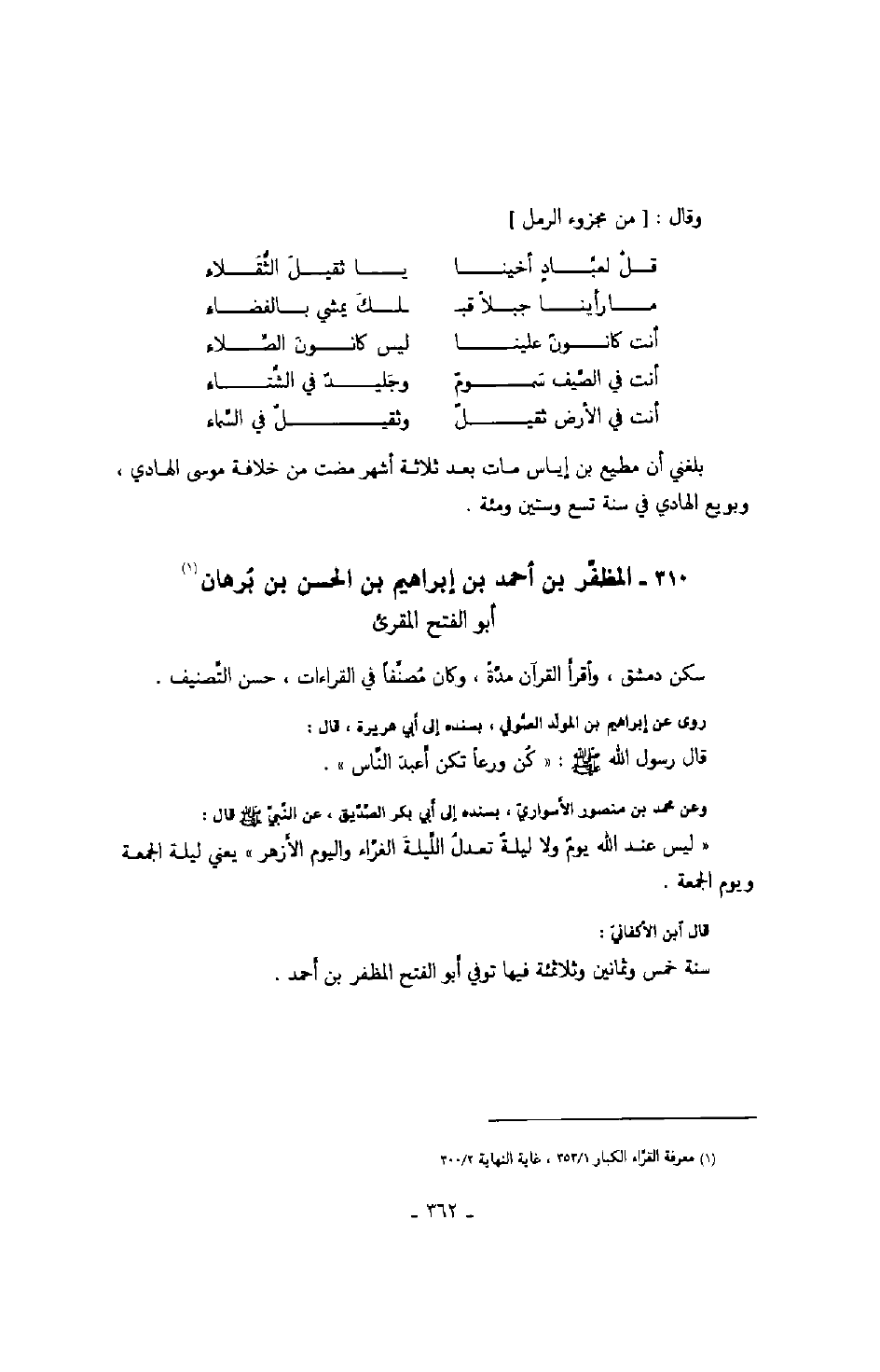 ابن الحسن بن برهان أبو الفتح المقرئ سكن دمشق، وأقرأ القرآن مدة، وكان مصنفاً في القراءات، حسن التصنيف.