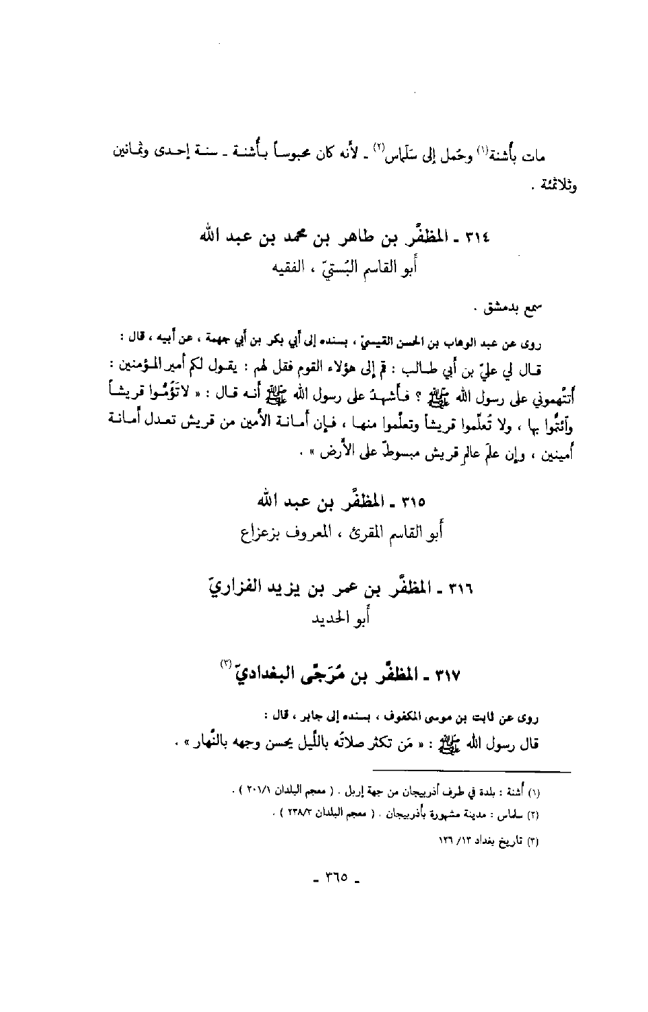 روى عن ثابت بن موسى المكفوف، بسنده إلى جابر، قال: قال رسول الله صَلَّى اللهُ عَلَيْهِ وَسَلَّمَ: " من تكثر صلاته بالليل يحسن وجهه بالنهار ".
