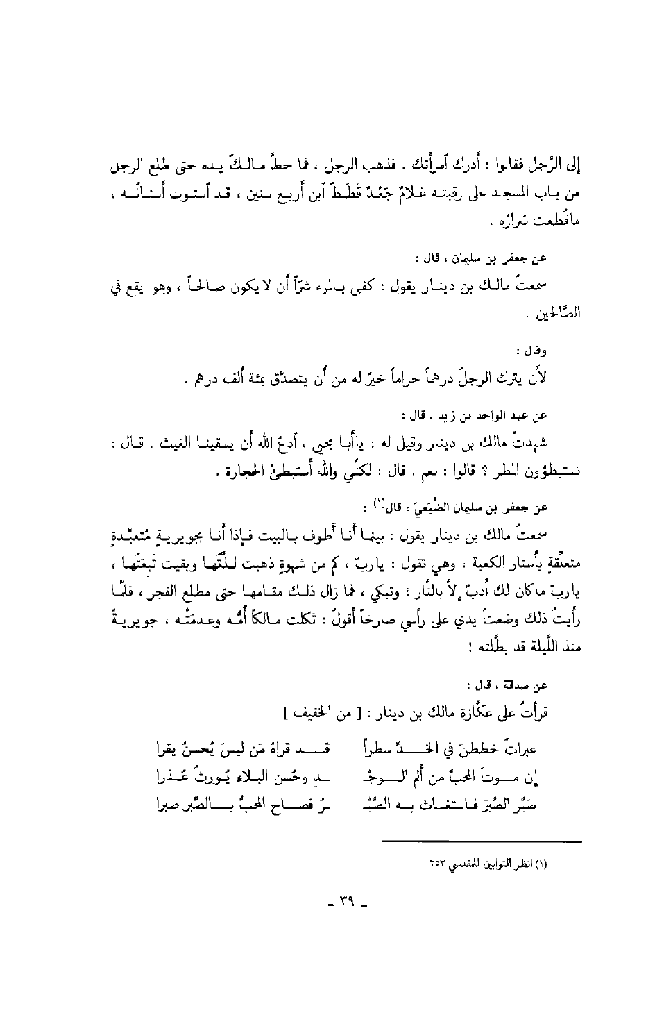 عن جعفر بن سليمان، قال: سمعت مالك بن دينار يقول: كفى بالمرء شراً أن لا يكون صالحاً، وهو يقع في الصالحين.