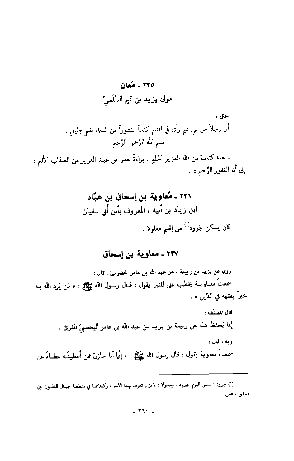 روى عن يزيد بن ربيعة، عن عبد الله بن عامر الحضرمي، قال: سمعت معاوية يخطب على المنبر يقول: قال رسول الله صَلَّى اللهُ عَلَيْهِ وَسَلَّمَ: " من يرد الله به خيراً يفقهه في الدين ".