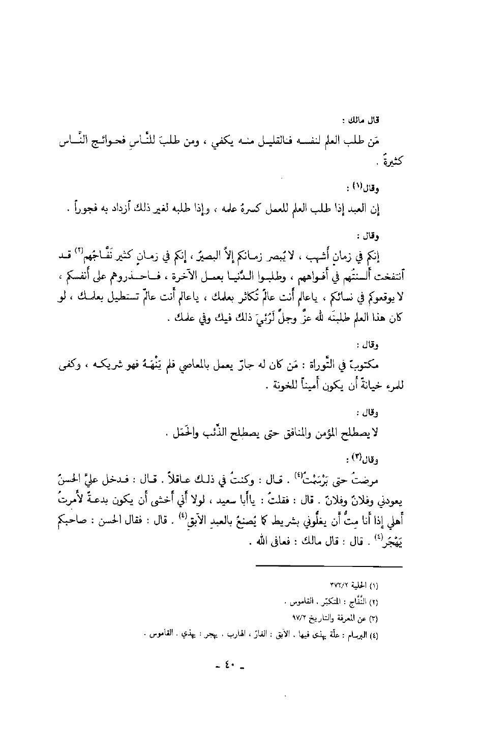 قال مالك: من طلب العلم لنفسه فالقليل منه يكفي، ومن طلب للناس فحوائج الناس كثيرة.
