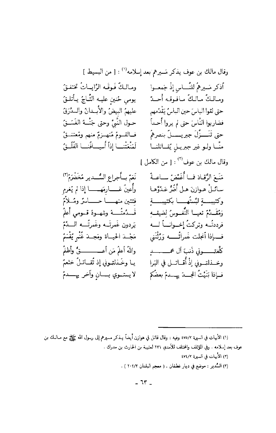 وقال مالك بن عوف: " من الكامل "