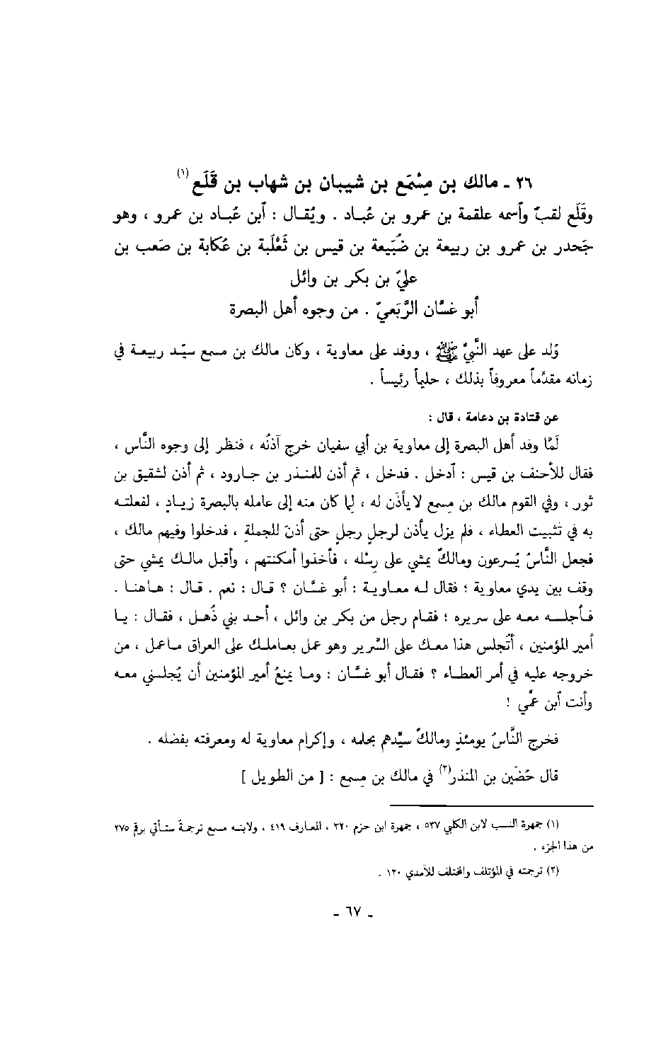مالك بن مسمع بن شيبان بن شهاب بن قلع