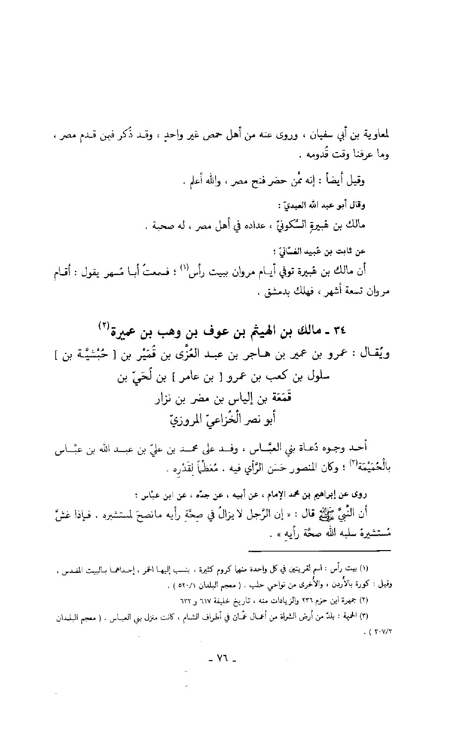 عن ثابت بن عبيد الغساني؛ أن مالك بن هبيرة توفي أيام مروان ببيت رأس؛ فسمعت أبا مسهر يقول: أقام مروان تسعة أشهر، فهلك بدمشق.
