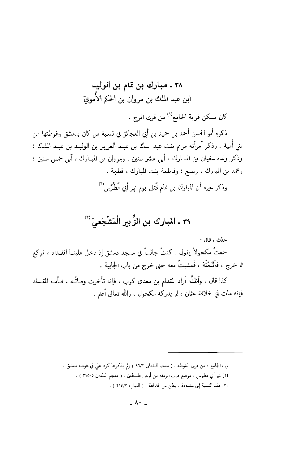 حدث، قال: سمعت مكحولاً يقول: كنت جالساً في مسجد دمشق إذ دخل علينا المقداد، فركع ثم خرج، فاتبعته، فمشيت معه حتى خرج من باب الجابية.