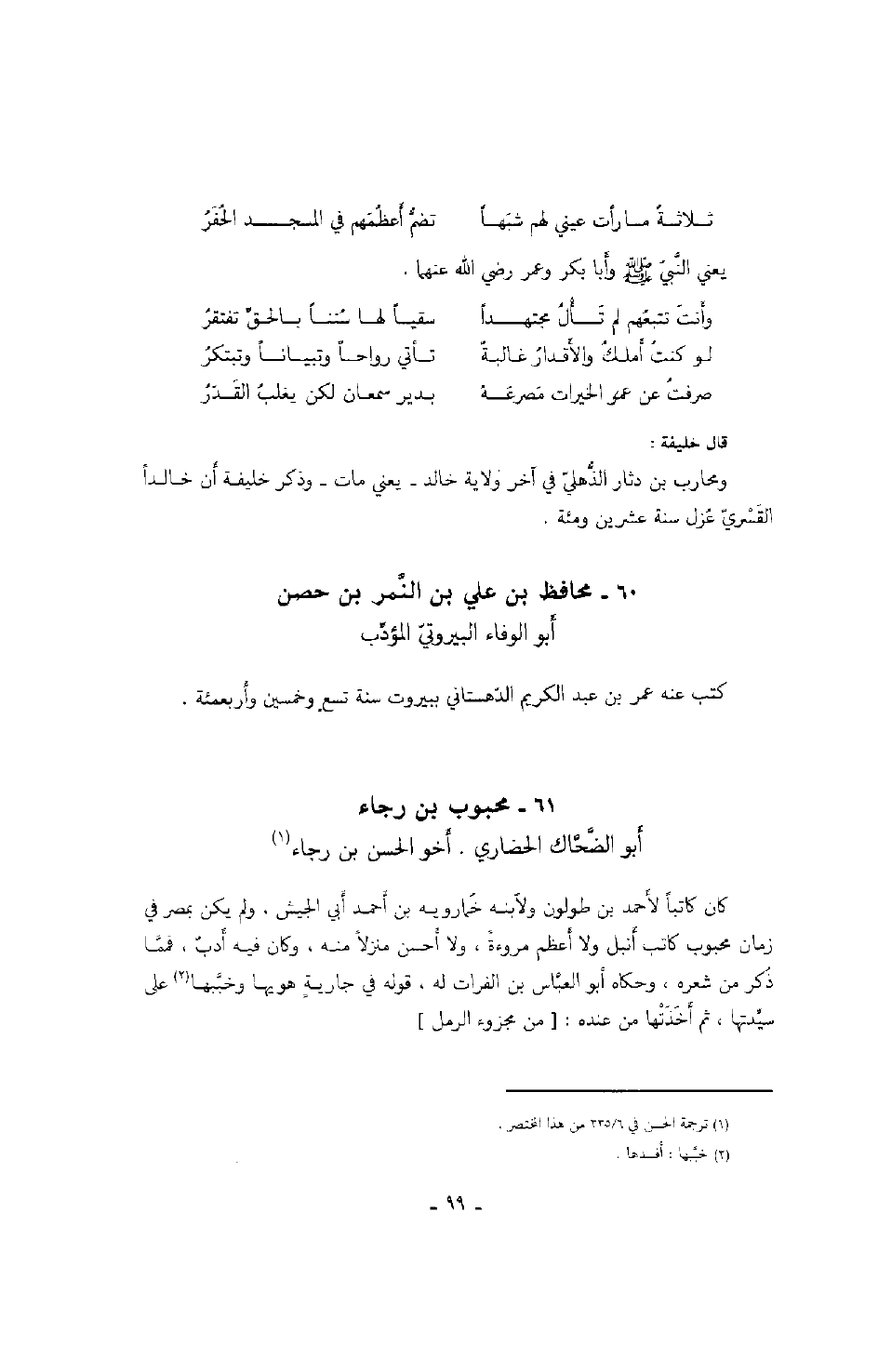 ثلاثة ما رأت عيني لهم شبهاً ... تضم أعظمهم في المسجد الحفر
