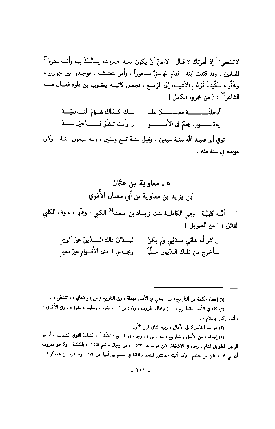 ابن يزيد بن معاوية بن أبي سفيان الأموي أمه كلبية، وهي الكاملة بنت زياد بن عتعت الكلبي، وعمها عوف الكلبي القائل: من الطويل