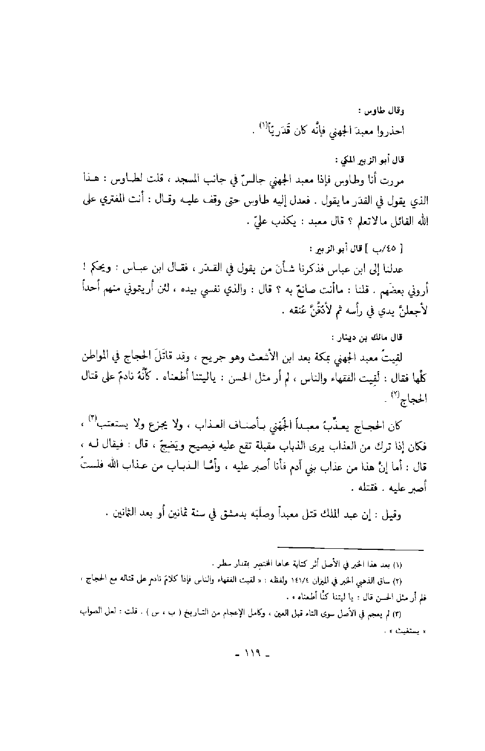 وقال طاوس: احذروا معبد الجهني فإنه كان قدرياً.