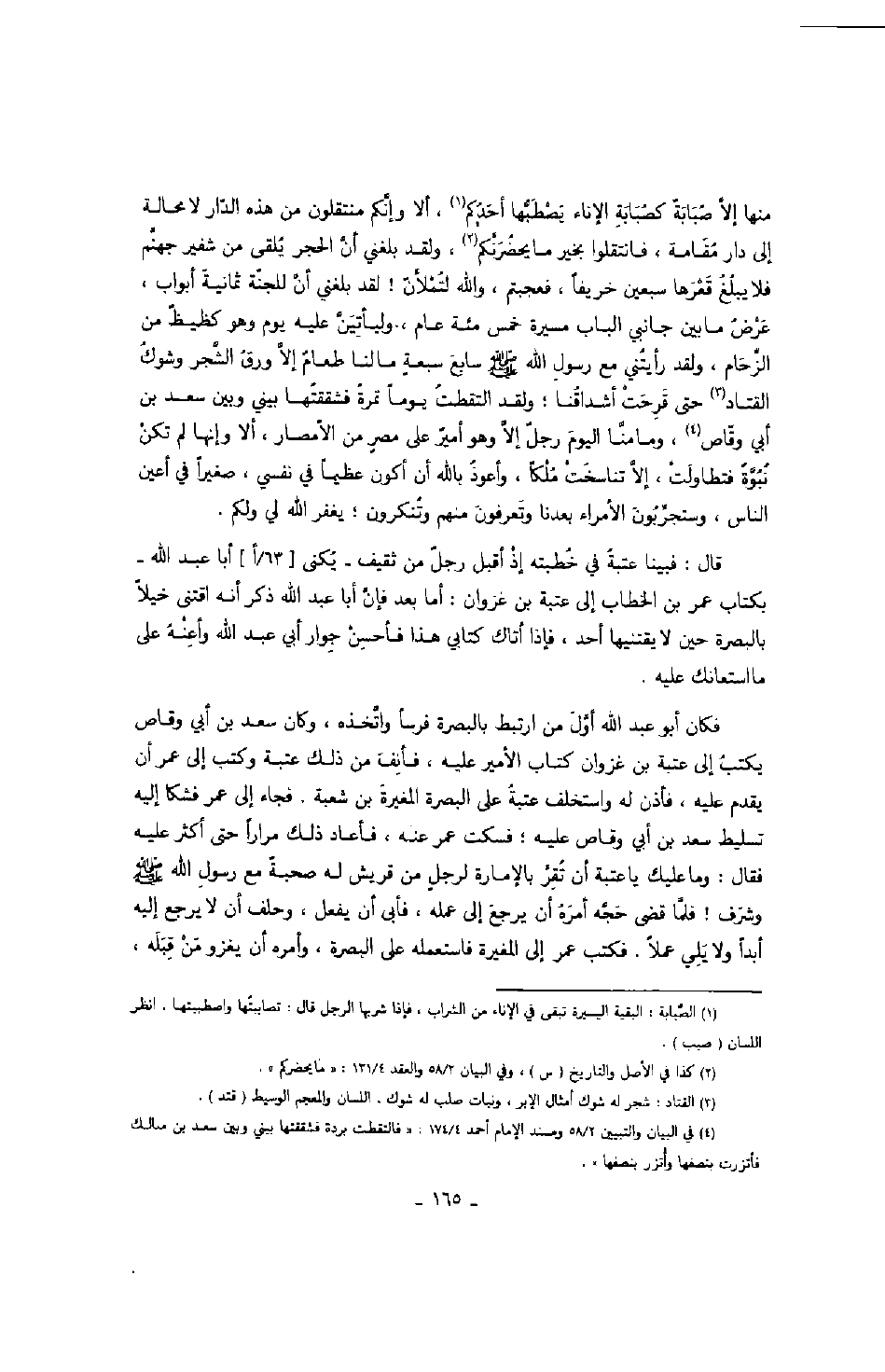 قال: فبينا عتبة في خطبته إذ أقبل رجل من ثقيف - يكنى أبا عبد الله - بكتاب عمر بن الخطاب إلى عتبة بن غزوان: أما بعد فإن أبا عبد الله ذكر أنه اقتنى خيلاً بالبصرة حين لا يقتنيها أحد، فإذا أتاك كتابي هذا فأحسن جوار أبي عبد الله وأعنه على ما استعانك عليه.