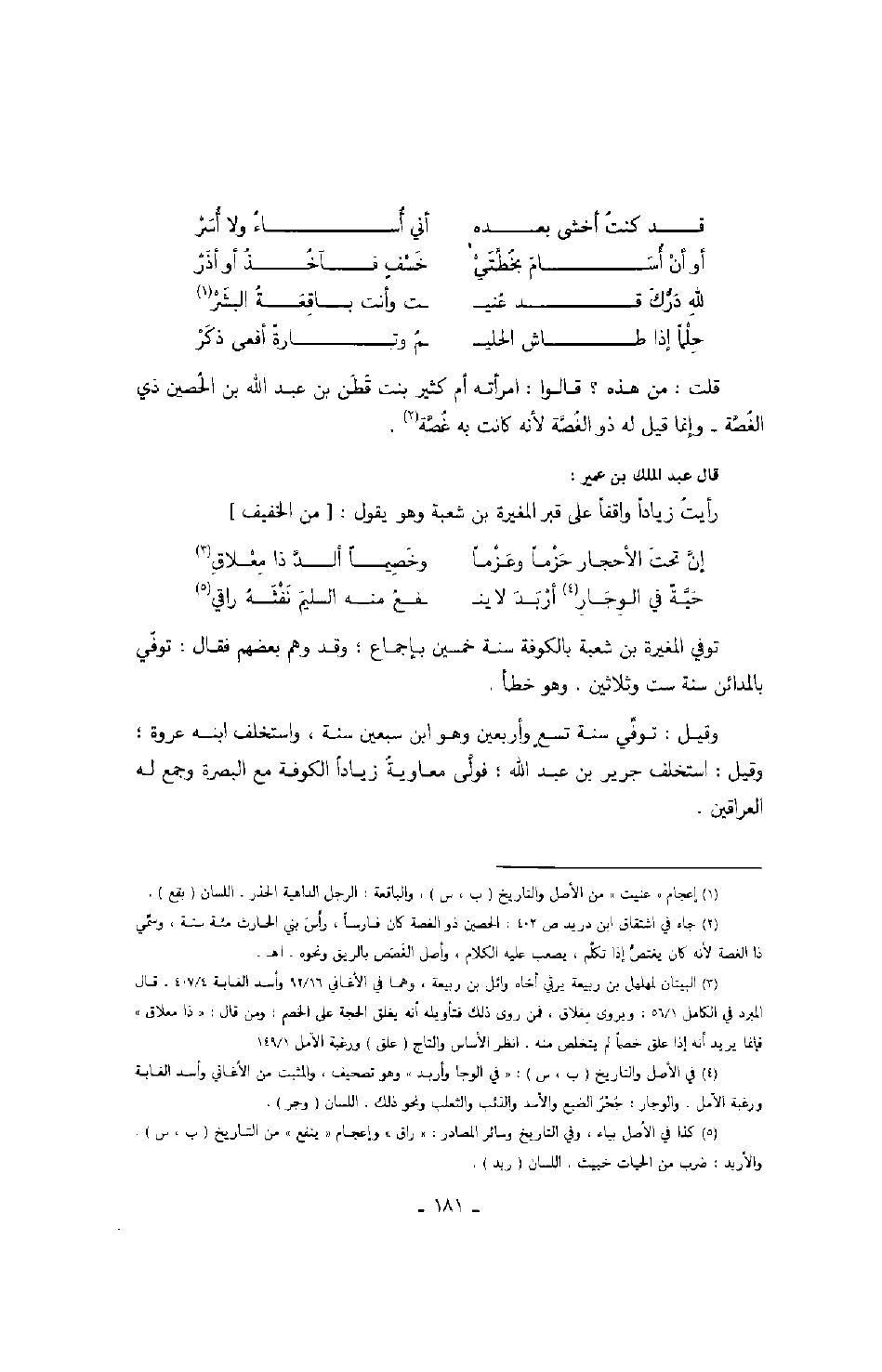 قال عبد الملك بن عمير: رأيت زياداً واقفاً على قبر المغيرة بن شعبة وهو يقول: من الخفيف