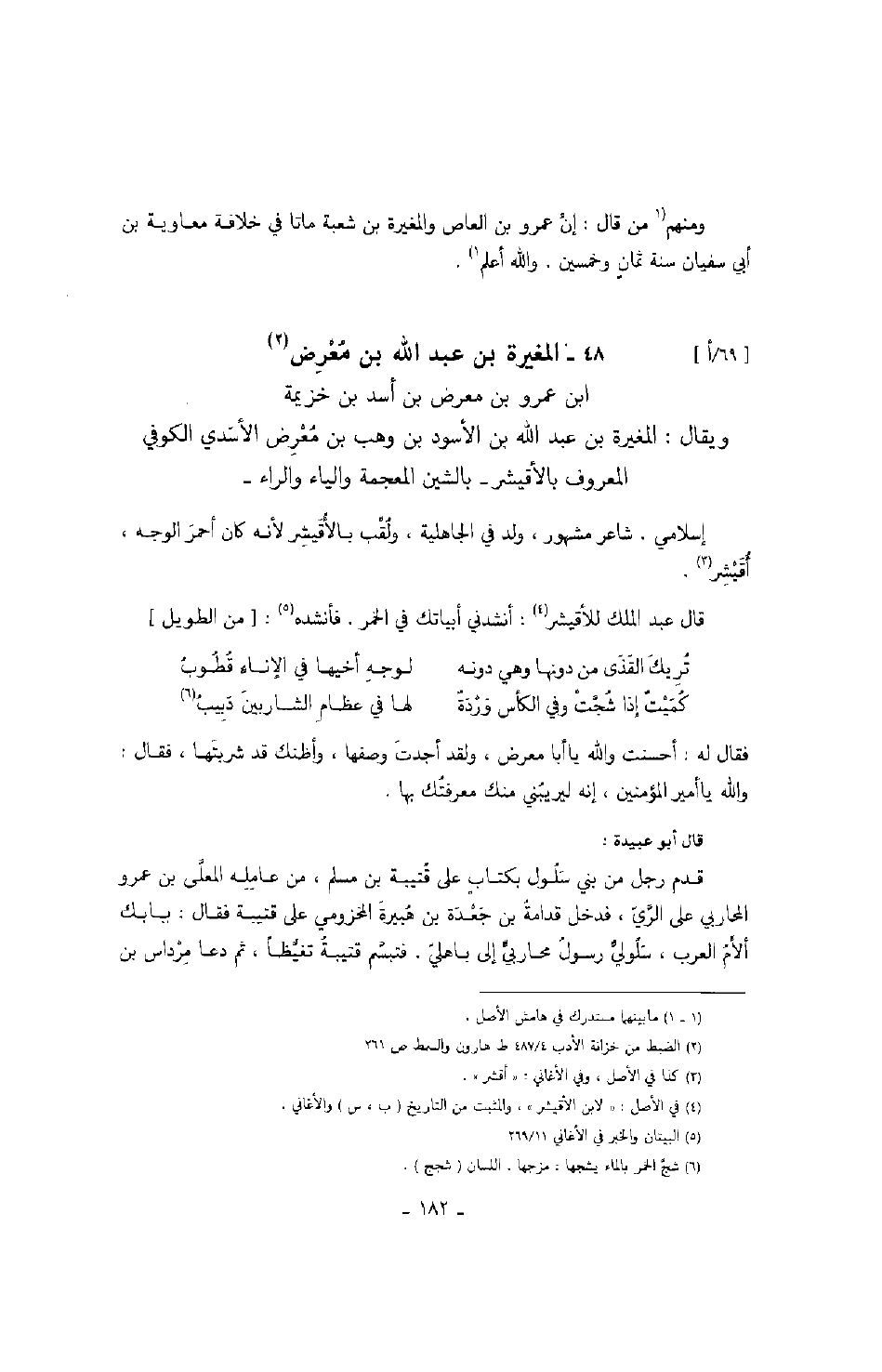 ابن عمرو بن معرض بن أسد بن خزيمة ويقال: المغيرة بن عبد الله بن الأسود بن وهب بن معرض الأسدي الكوفي المعروف بالأقيشر - بالشين المعجمة والياء والراء - إسلامي. شاعر مشهور، ولد في الجاهلية، ولقب بالأقيشر لأنه كان أحمر الوجه، أقيشر.