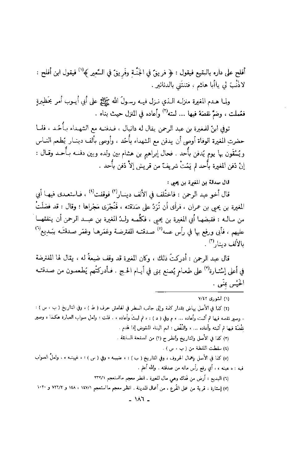 قال عبد الرحمن: أدركت ذلك، وكان المغيرة قد وقف ضيعة له، يقال لها المفترضة في أعلى إستارة على طعام يصنع بمنى في أيام الحج. فأدركتهم يطعمون من صدقته الحيس بمنى.