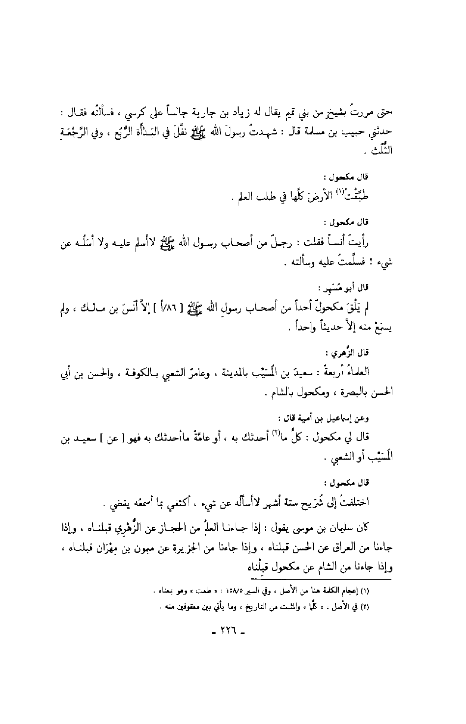 قال مكحول: طبقت الأرض كلها في طلب العلم.