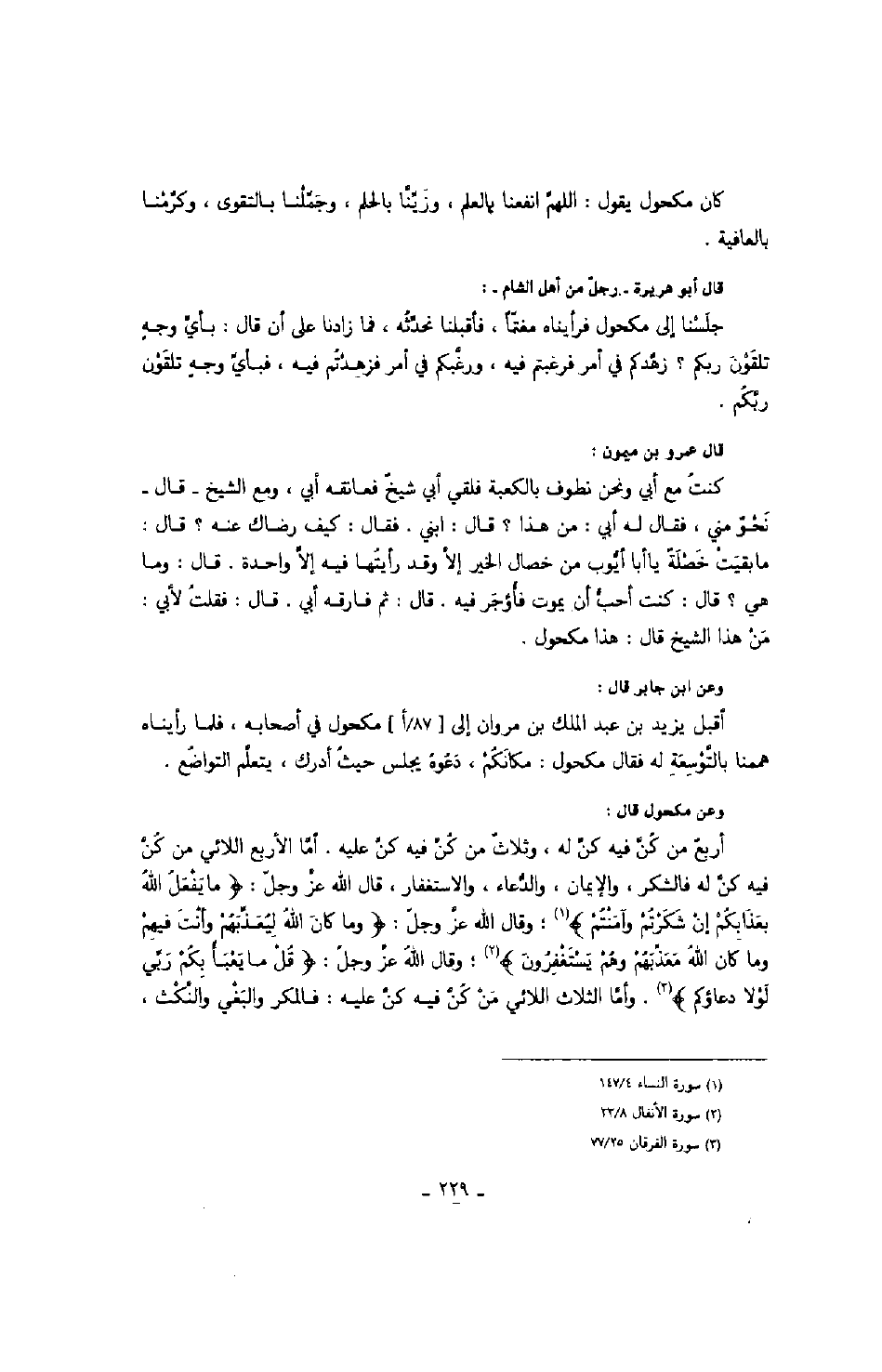 كان مكحول يقول: الله انفعنا بالعلم، وزينا بالحلم، وجملنا بالتقوى، وكرمنا بالعافية.