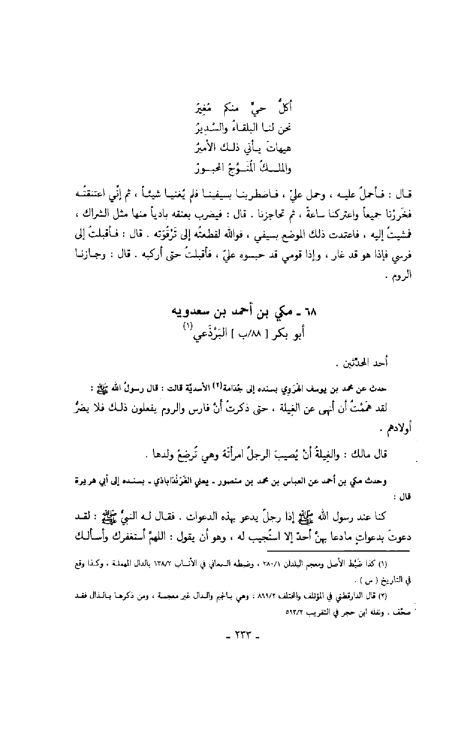 وحدث مكي بن أحمد عن العباس بن محمد بن منصور - يعني الفرنداباذي - بسنده إلى أبي هريرة قال: كنا عند رسول الله صَلَّى اللهُ عَلَيْهِ وَسَلَّمَ إذا رجل يدعو بهذه الدعوات. فقال له النبي صَلَّى اللهُ عَلَيْهِ وَسَلَّمَ: لقد دعوت بدعوات ما دعا بهن أحد إلا استجبت له، وهو أن يقول: اللهم أستغفرك وأسألك