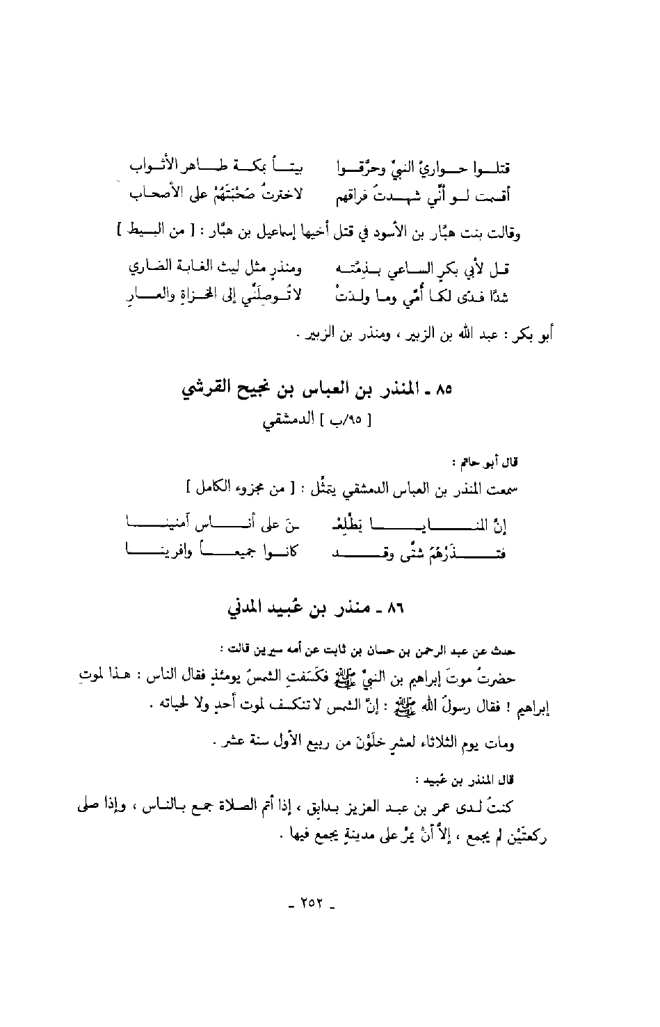 الدمشقي قال أبو حاتم سمعت المنذر بن العباس الدمشقي يتمثل: من مجزوء الكامل