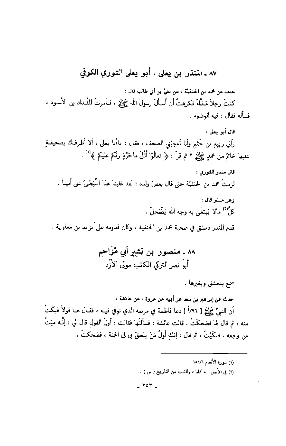 قال منذر الثوري: لزمت محمد بن الحنفية حتى قال بعض ولده: لقد غلبنا هذا النبطي على أبينا.