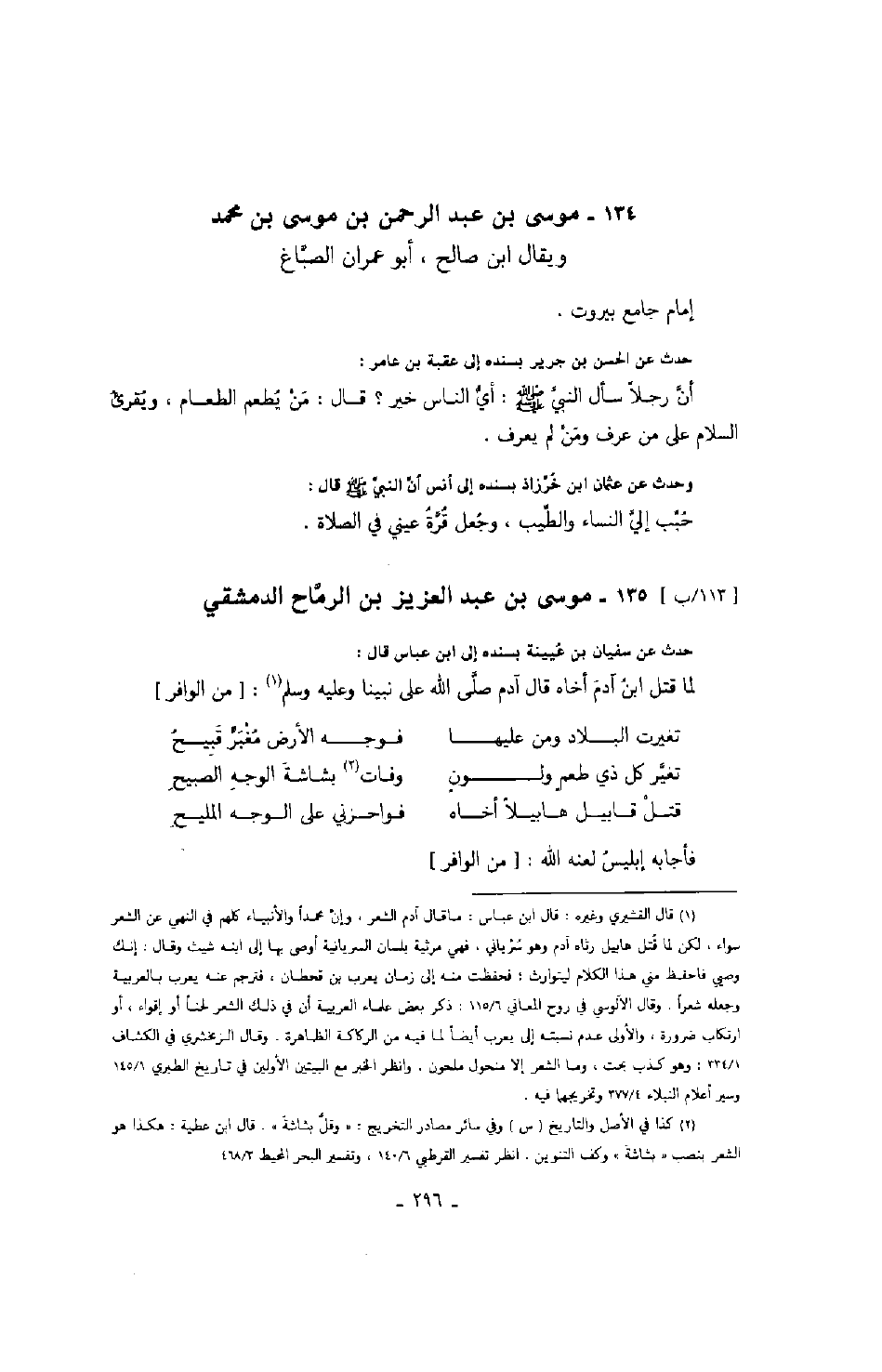 حث عن سفيان بن عيينة بسنده إلى ابن عباس قال: لما قتل ابن آدم أخاه قال آدم صلى الله على نبينا ولعيه السلام: من الوافر