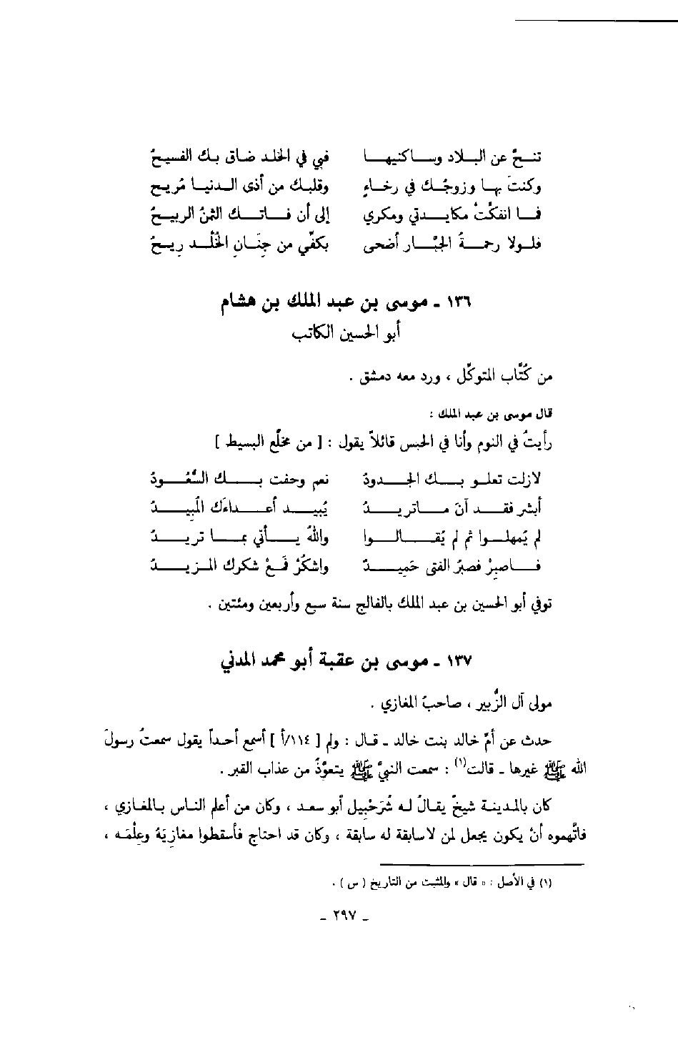 موسى بن عبد الملك بن هشام أبو الحسين الكاتب من كتاب المتوكل، ورد معه دمشق.