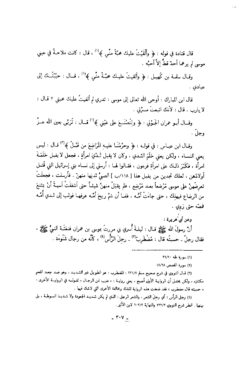 قال قتادة في قوله: " وألقيت عليك محبة مني "، قال: كانت ملاحة في عيني موسى لم يرهما أحد قط إلا أحبه.