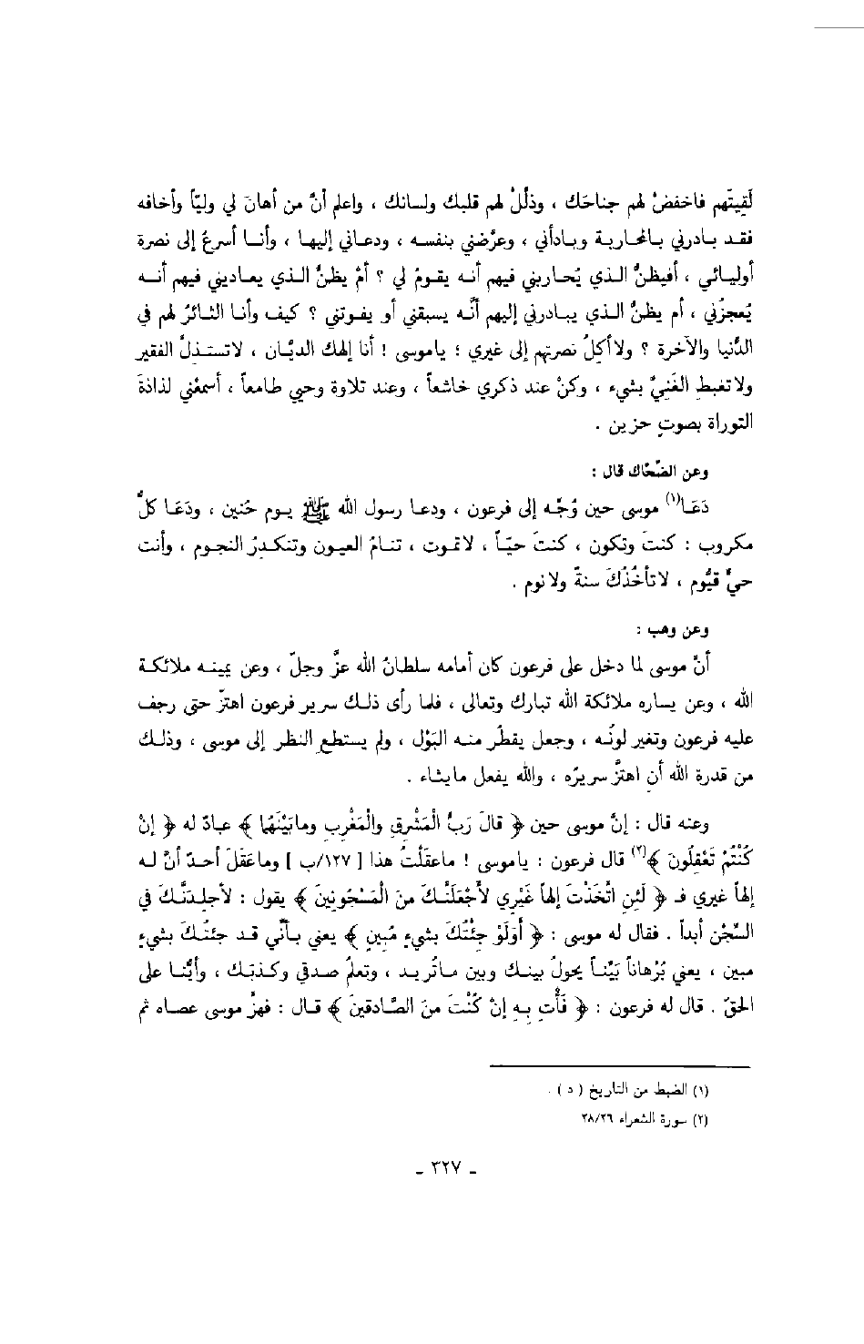 وعن الضحاك قال: دعا موسى حين وجه إلى فرعون، ودعا رسول الله صَلَّى اللهُ عَلَيْهِ وَسَلَّمَ يوم حنين، ودعا كل مكروب: كنت وتكون، كنت حياً، لا تموت، تنام العيون وتنكدر النجوم، وأنت حي قيوم، لا تأخذك سنة ولا نوم.