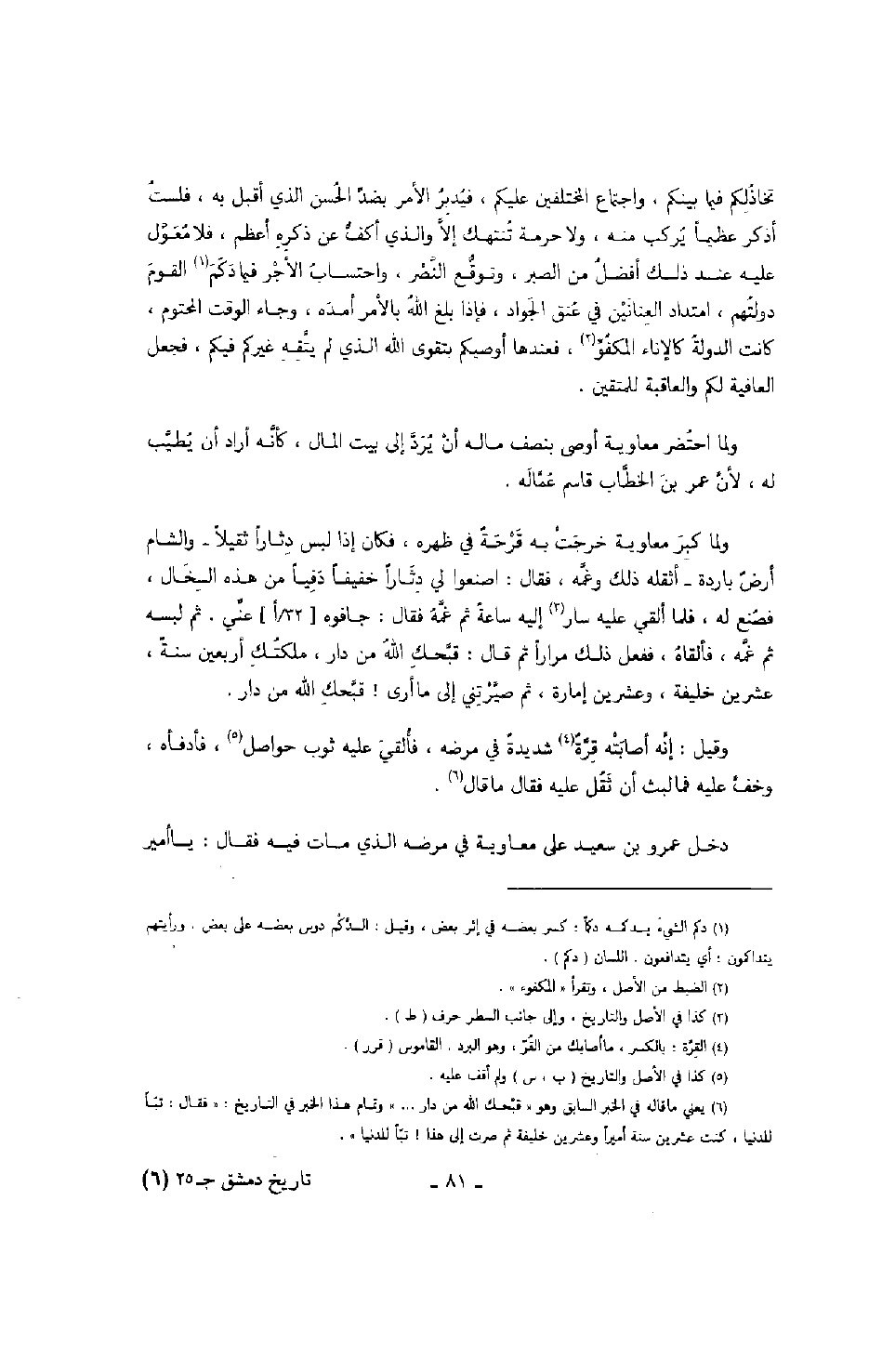 ولما احتضر معاوية أوصى بنصف ماله أن يرد إلى بيت المال، كأنه أراد أن يطيب له، لأن عمر بن الخطاب قاسم عماله.
