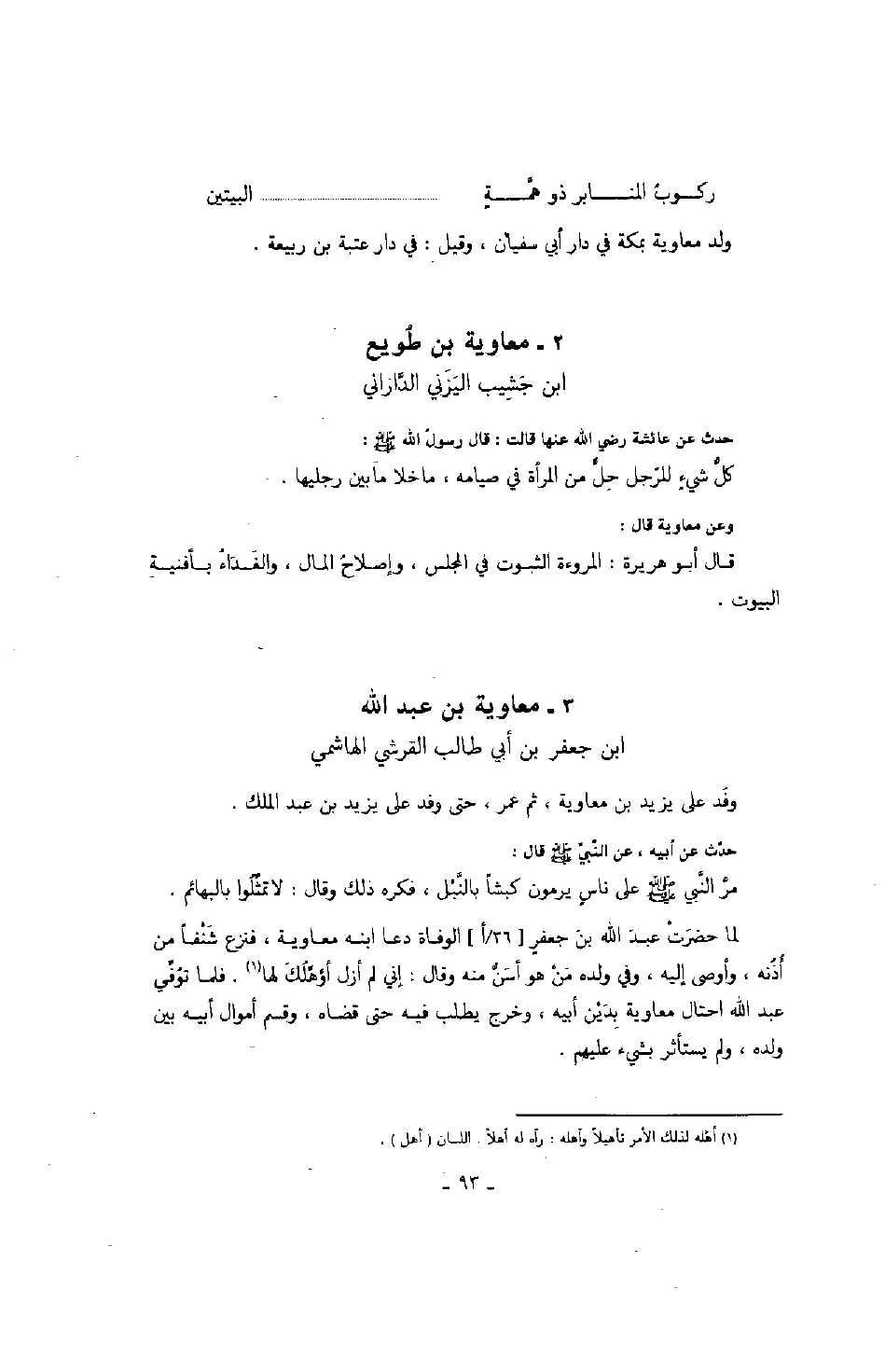 وعن معاوية قال: قال أبو هريرة: المروءة الثبوت في المجلس، وإصلاح المال، والغداء بأفنية البيوت.