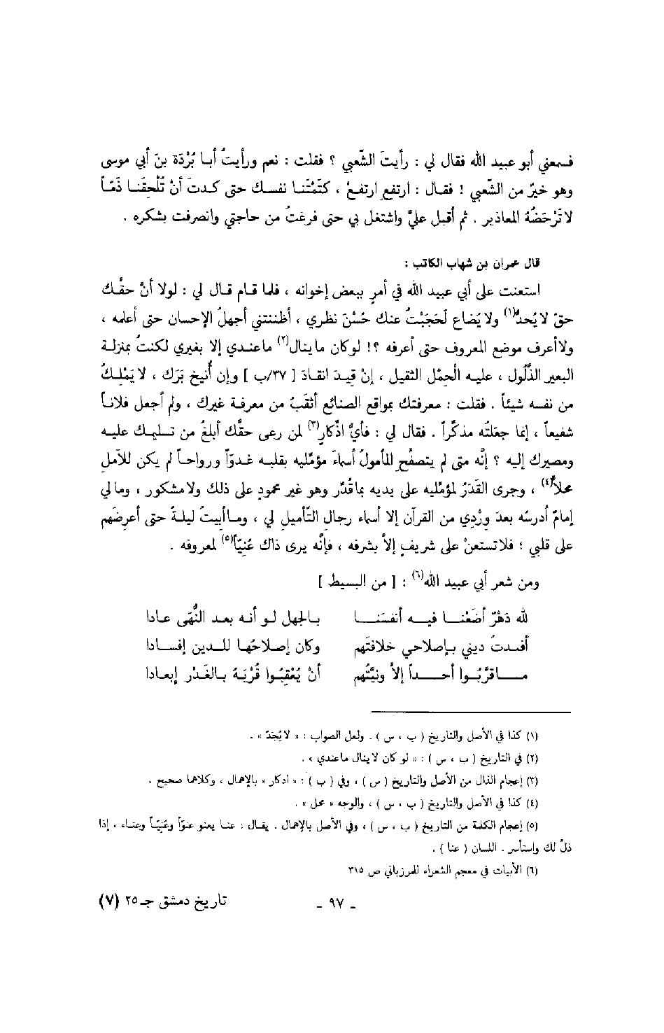 ومن شعر أبي عبيد الله: من البسيط