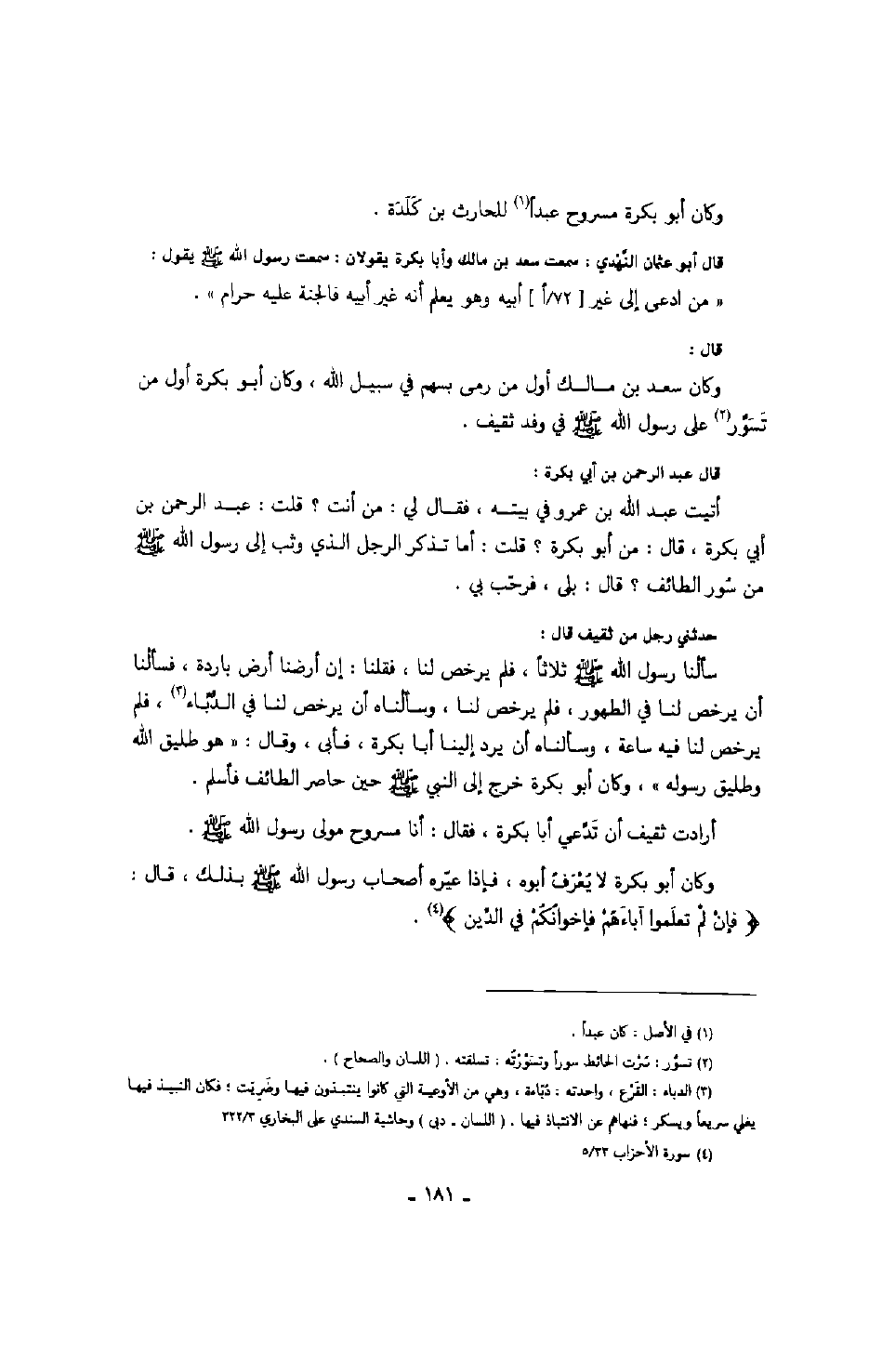 أرادت ثقيف أن تدعي أبا بكرة، فقال: أنا مسروح مولى رسول الله صَلَّى اللهُ عَلَيْهِ وَسَلَّمَ.